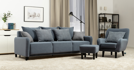 Диван-кровать прямой Тэдди 1504 композиция 1, букле Pique 009 синий, модульная система