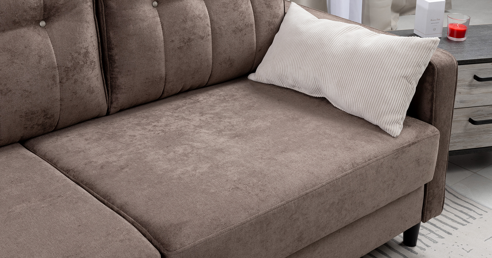 Подушки имеют трапециевидную форму, с утолщением к низу для комфорта посадки. Кант по всему периметру подушек, декоративные утяжки металлическими пуговицами, вертикальная стежка.