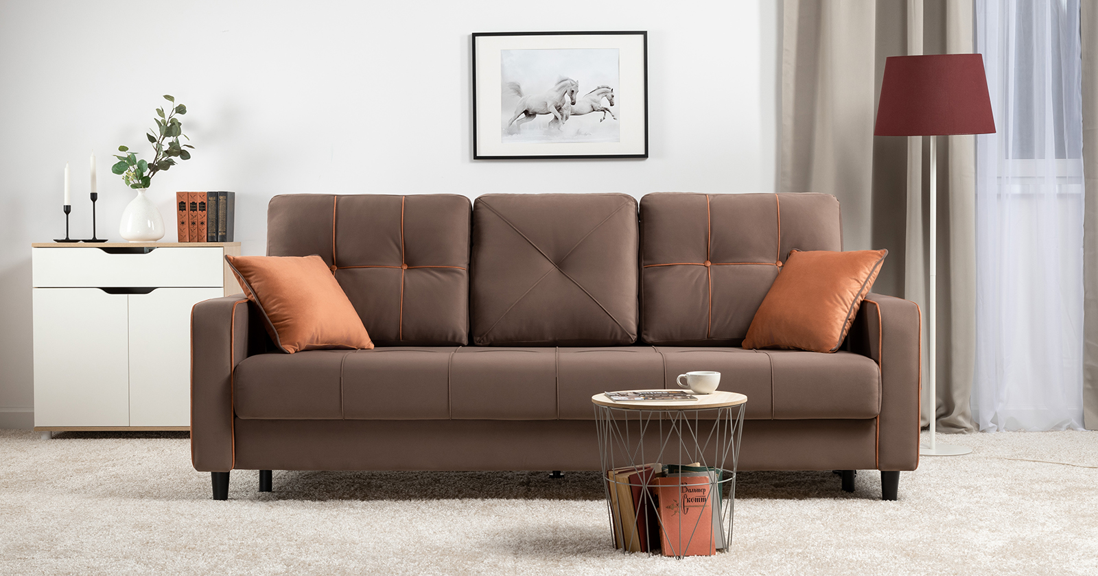 Диван-кровать прямой Черри ТД 286 велюр Irida 05 шоколадно-коричневый, Эвита терра терракотовый