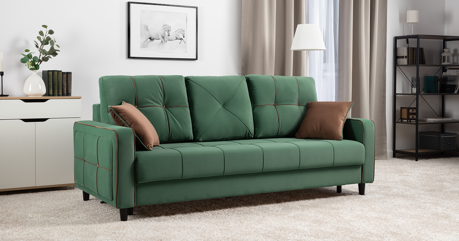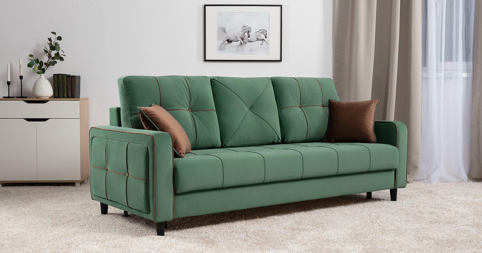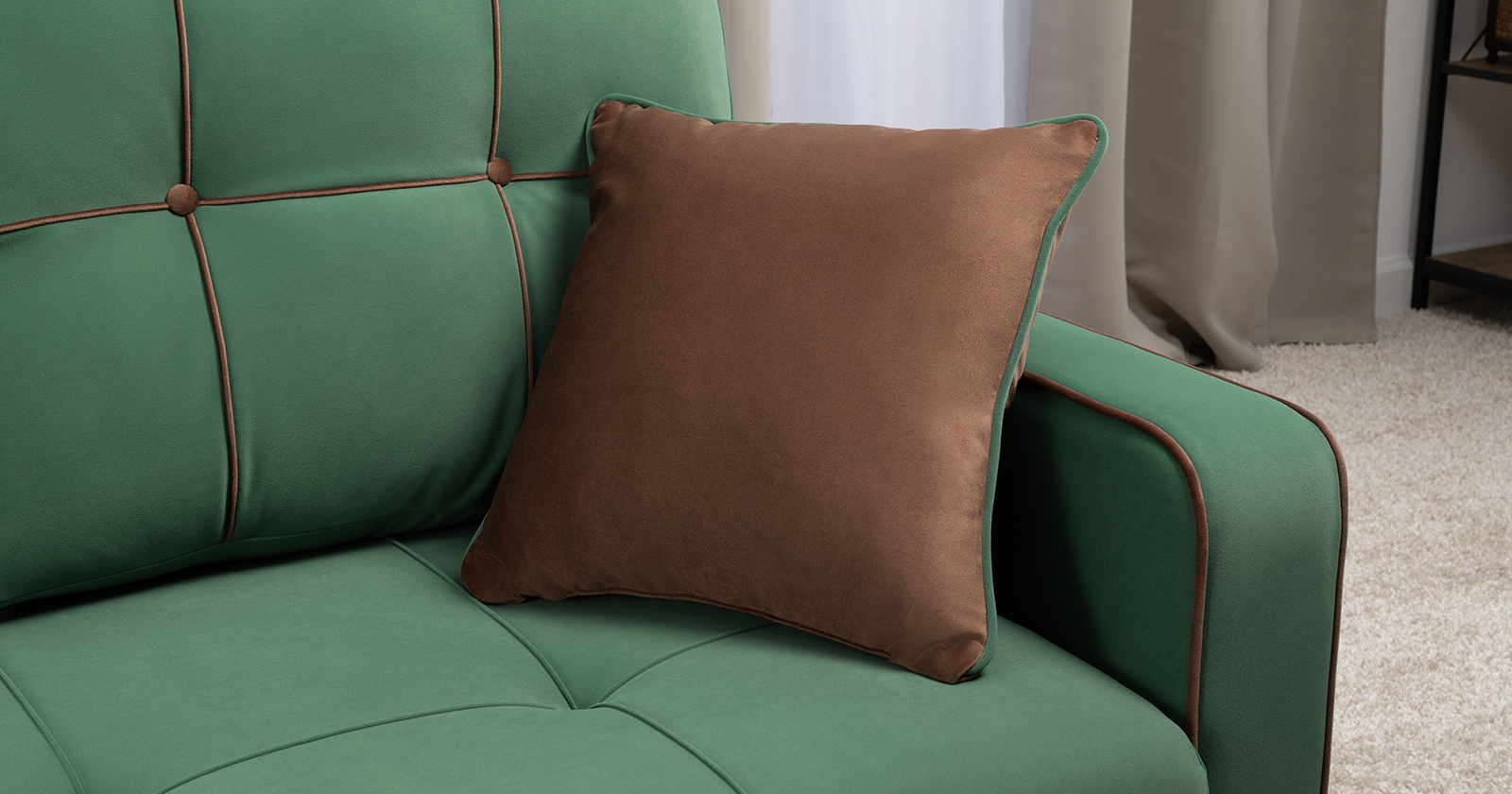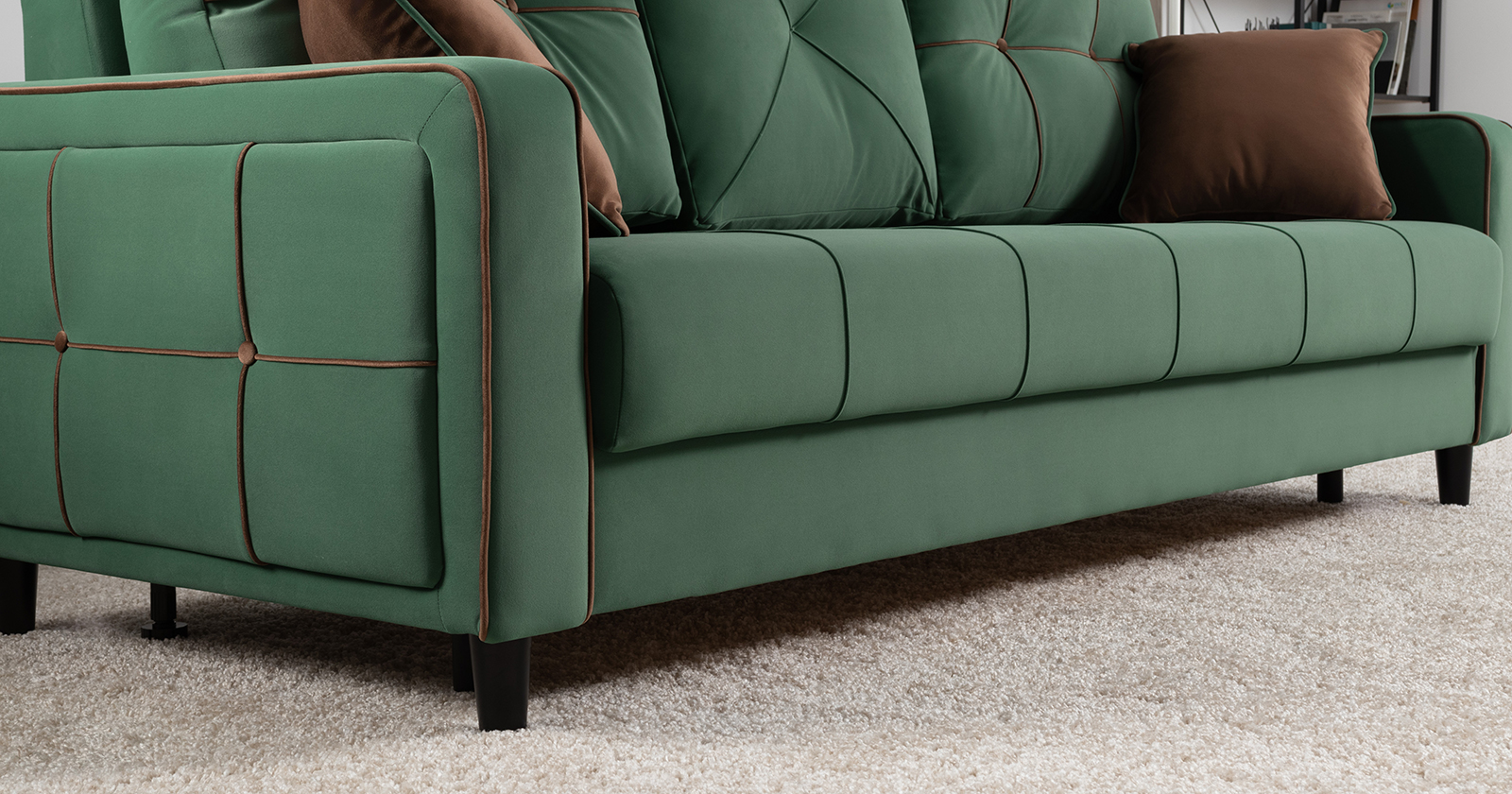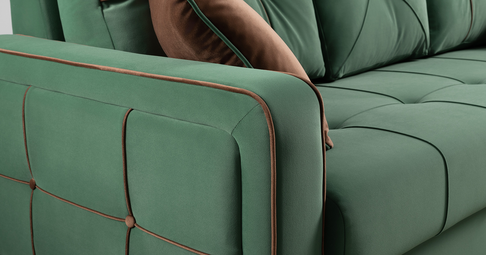 Диван-кровать прямой Черри ТД 288 велюр Irida 09 зеленый, Эвита шоколад бежево-коричневый