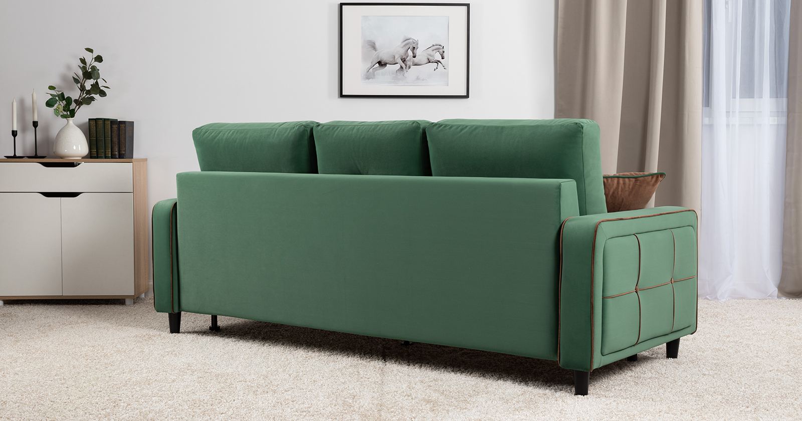 Диван-кровать прямой Френсис ТД 260 велюр Амиго грин нефритовый зеленый
