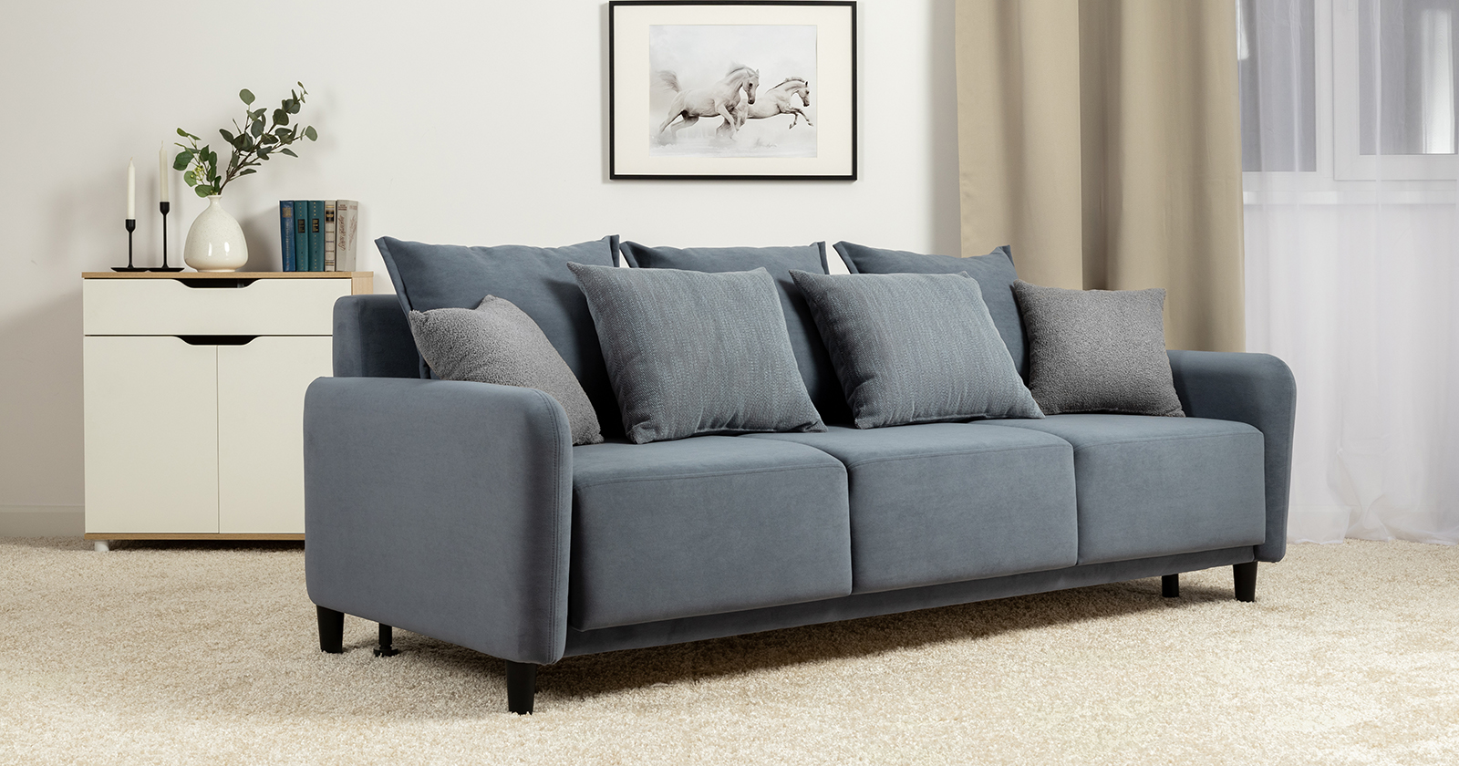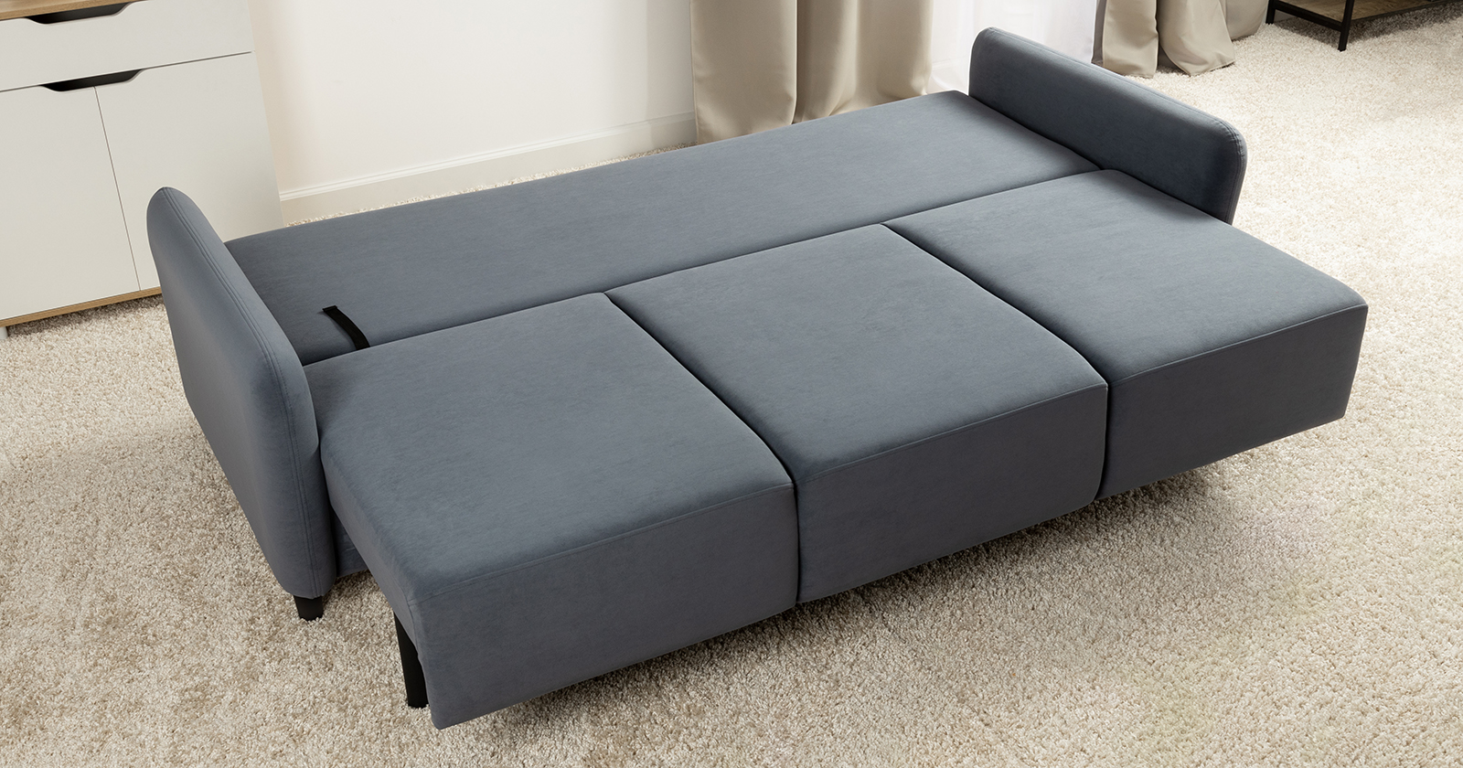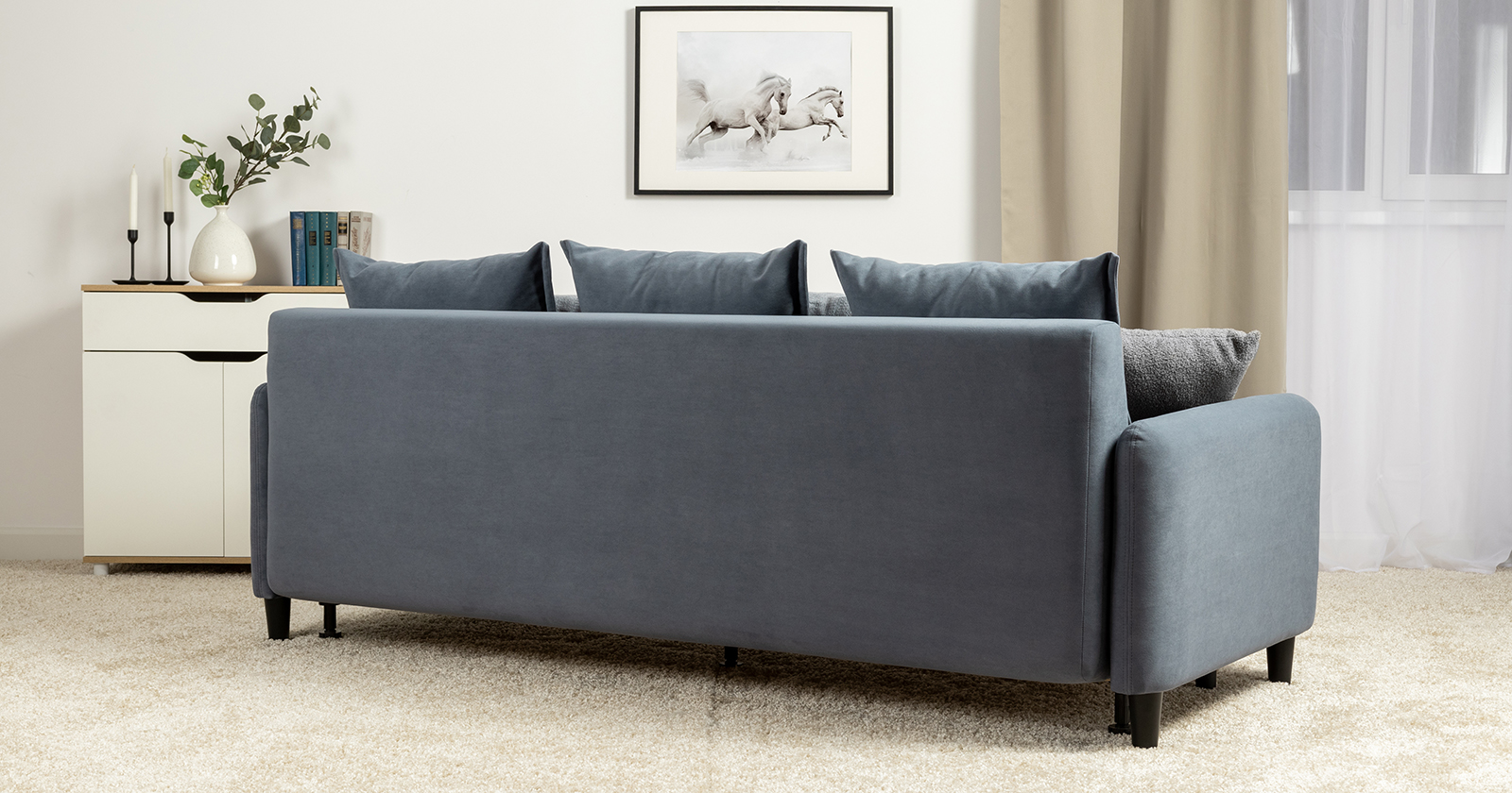 Диван-кровать прямой Дакота ТД 584 велюр Vendetta 24 синий, Riga 1598 z1 col 20 серо-голубой, Romeo 06