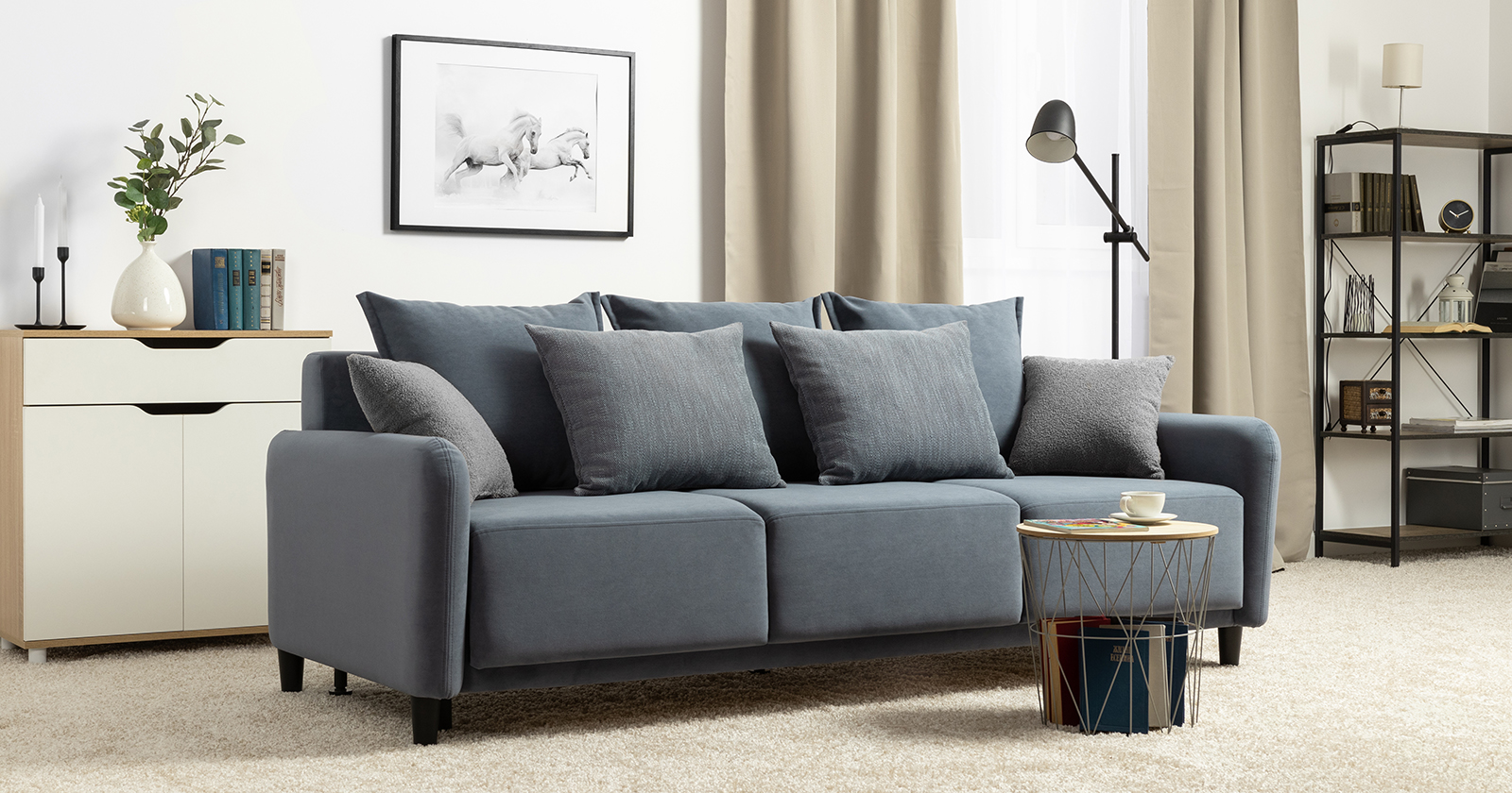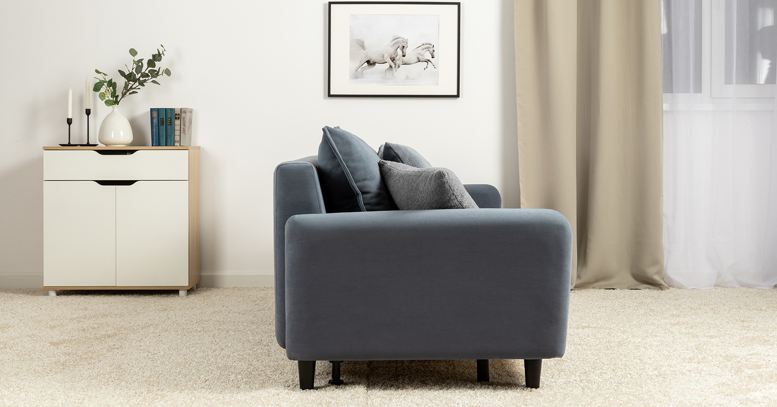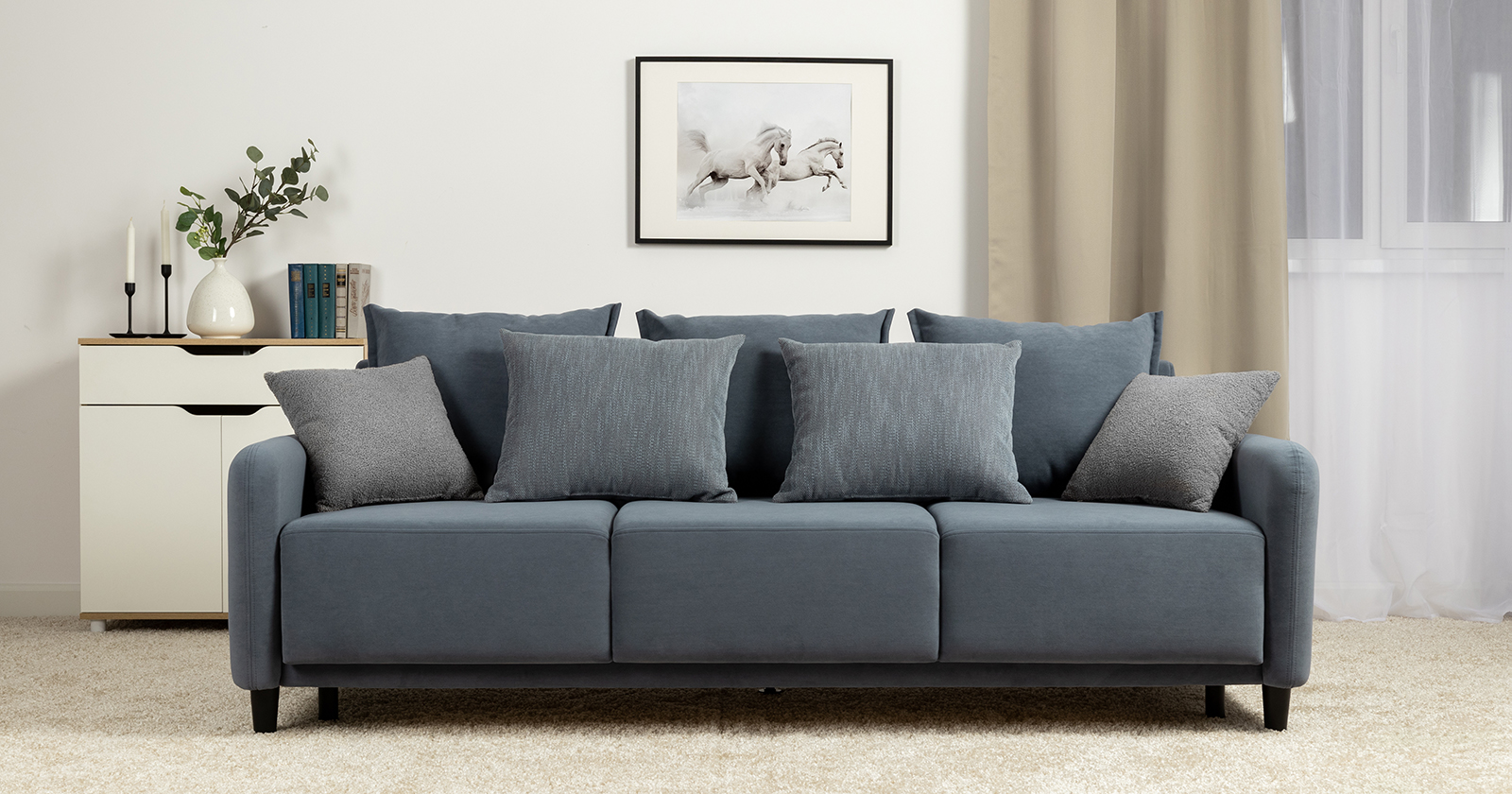 Диван-кровать прямой Дакота ТД 584 велюр Vendetta 24 синий, Riga 1598 z1 col 20 серо-голубой, Romeo 06