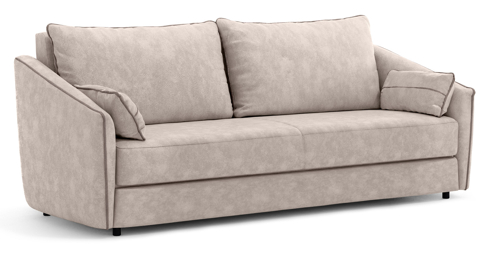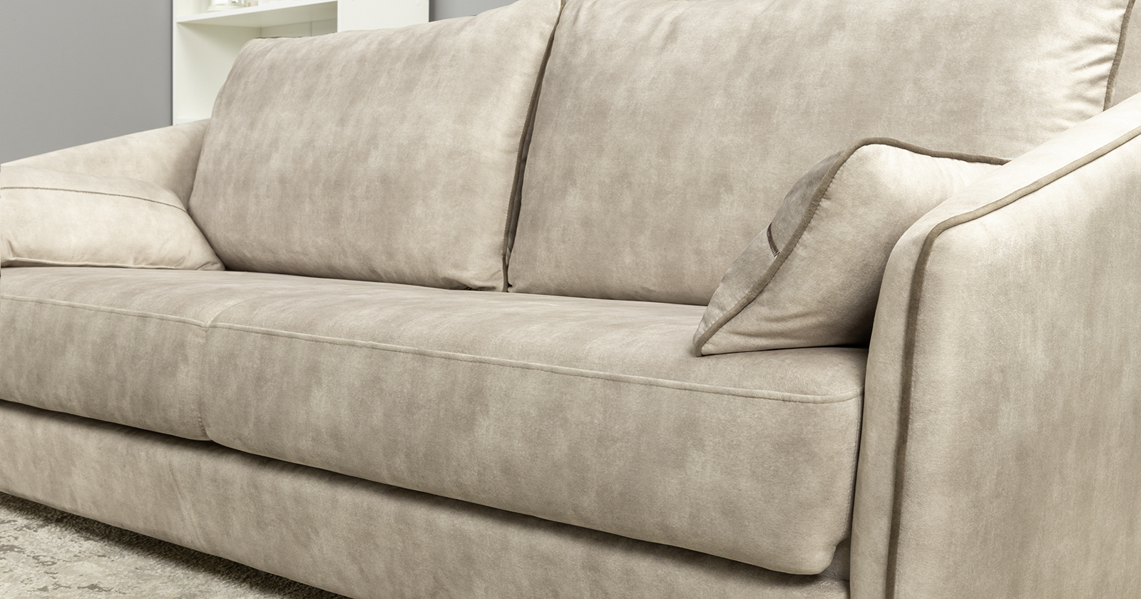 Подлокотники с выраженным контрастным кантом по внешнему контуру изделия. Декоративные подушки оформлены декоративной отстрочкой «зигзаг».