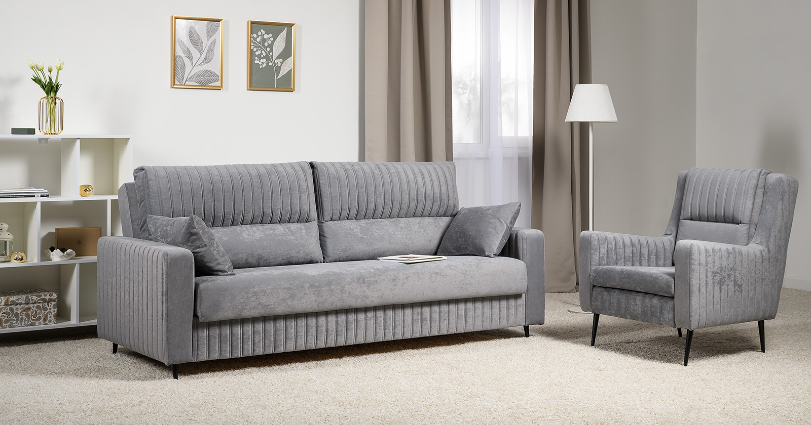 Диван-кровать прямой Изабель ТД 735 велюр Романс грей cерый