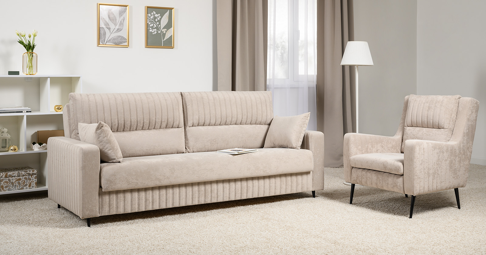 Диван-кровать прямой Изабель ТД 738 велюр Романс пебл бежевый