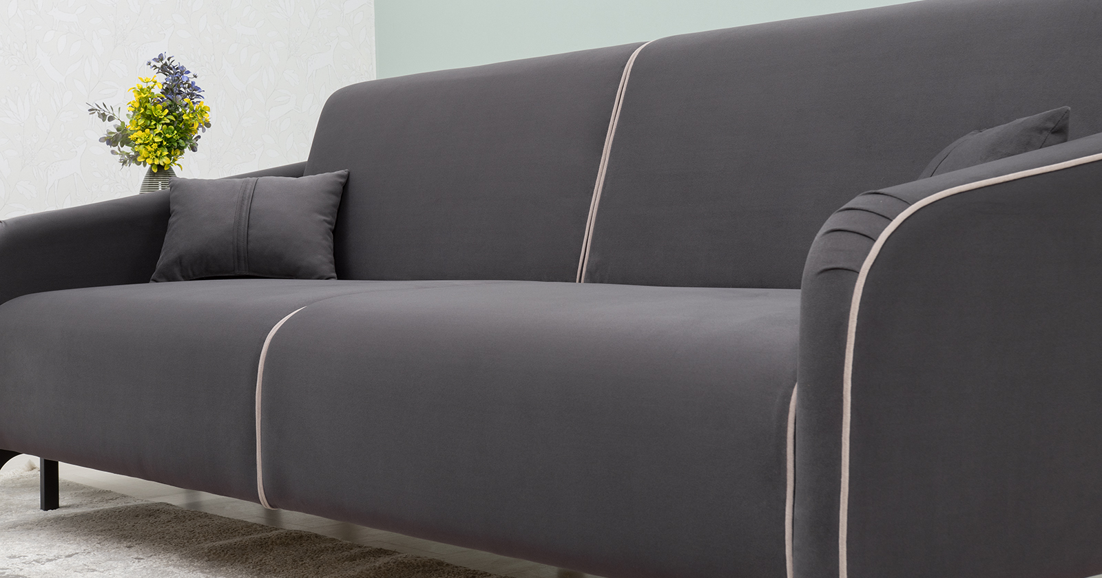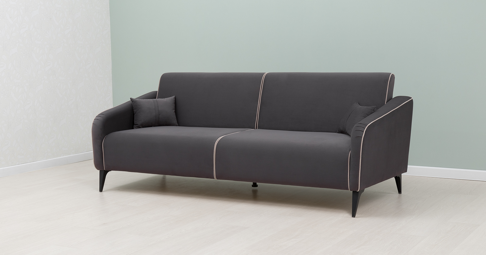 Диван-кровать прямой Ноэль ТД 447 велюр темно-серый, светлый кварцевый серый