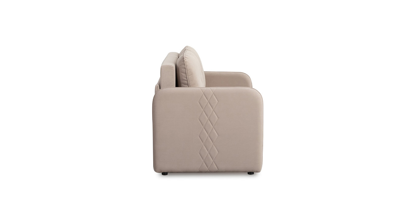 Стильный компактный диван для детской и гостиной. При своих скромных размерах он трансформируется в полноценное спальное место для детей и подростков. Лаконичный дизайн в виде декоративной стежки подчеркивает фактуру велюра, а небольшие размеры позволят разместить его в любом пространстве.
