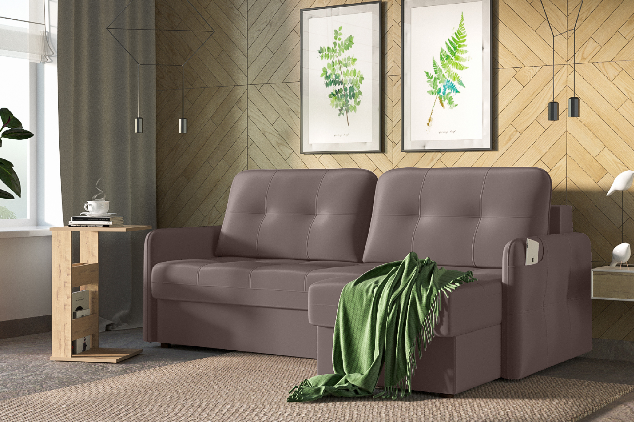 Диван-кровать угловой SMART 1 правый, микрофибра Kongo brown (2Т-1Пф)