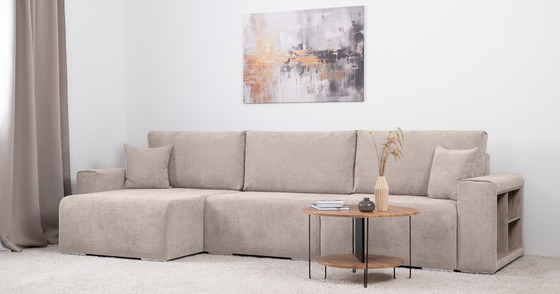 Диван-кровать угловой SMART 4 левый, велюр Velutto 05 бежевый (Б3-1Пф-2Т-Б4)