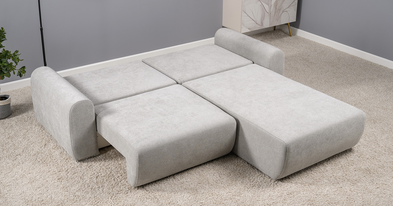 Диван-кровать угловой Тэдди 1506 композиция 3, букле Pique 011 серый, модульная система, сборка на любую сторону