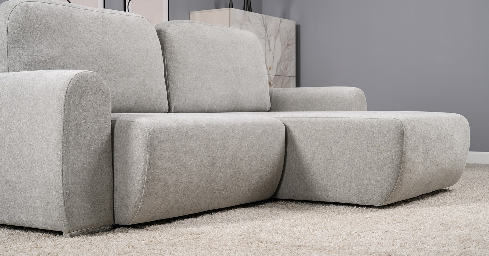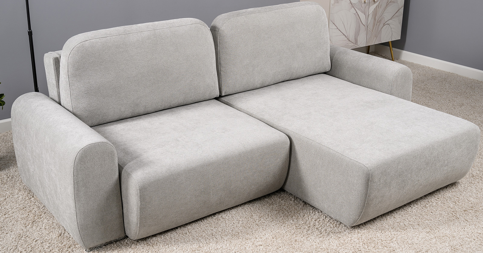 Диван-кровать угловой Тэдди 1506 композиция 2, букле Pique 011 серый, модульная система, сборка на любую сторону