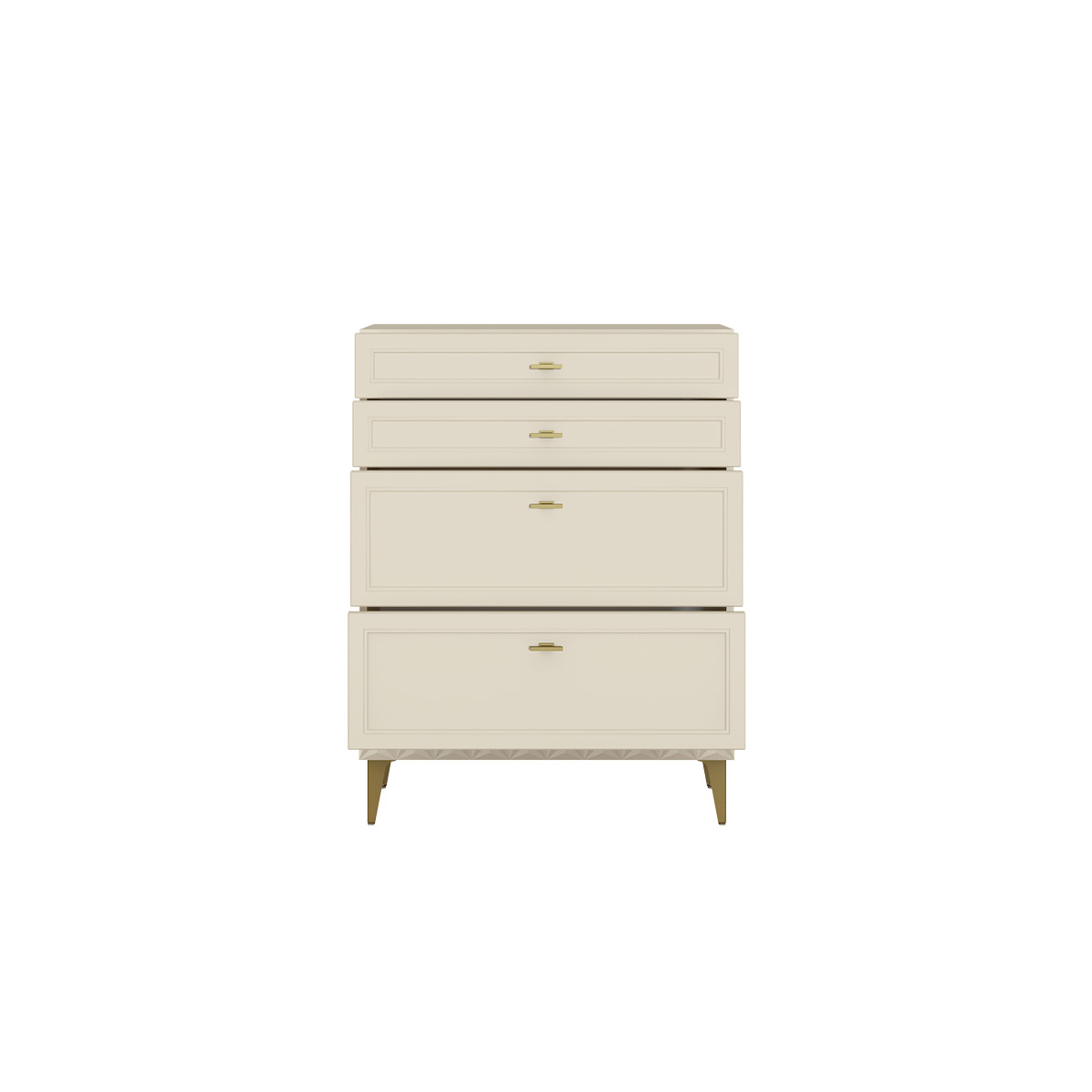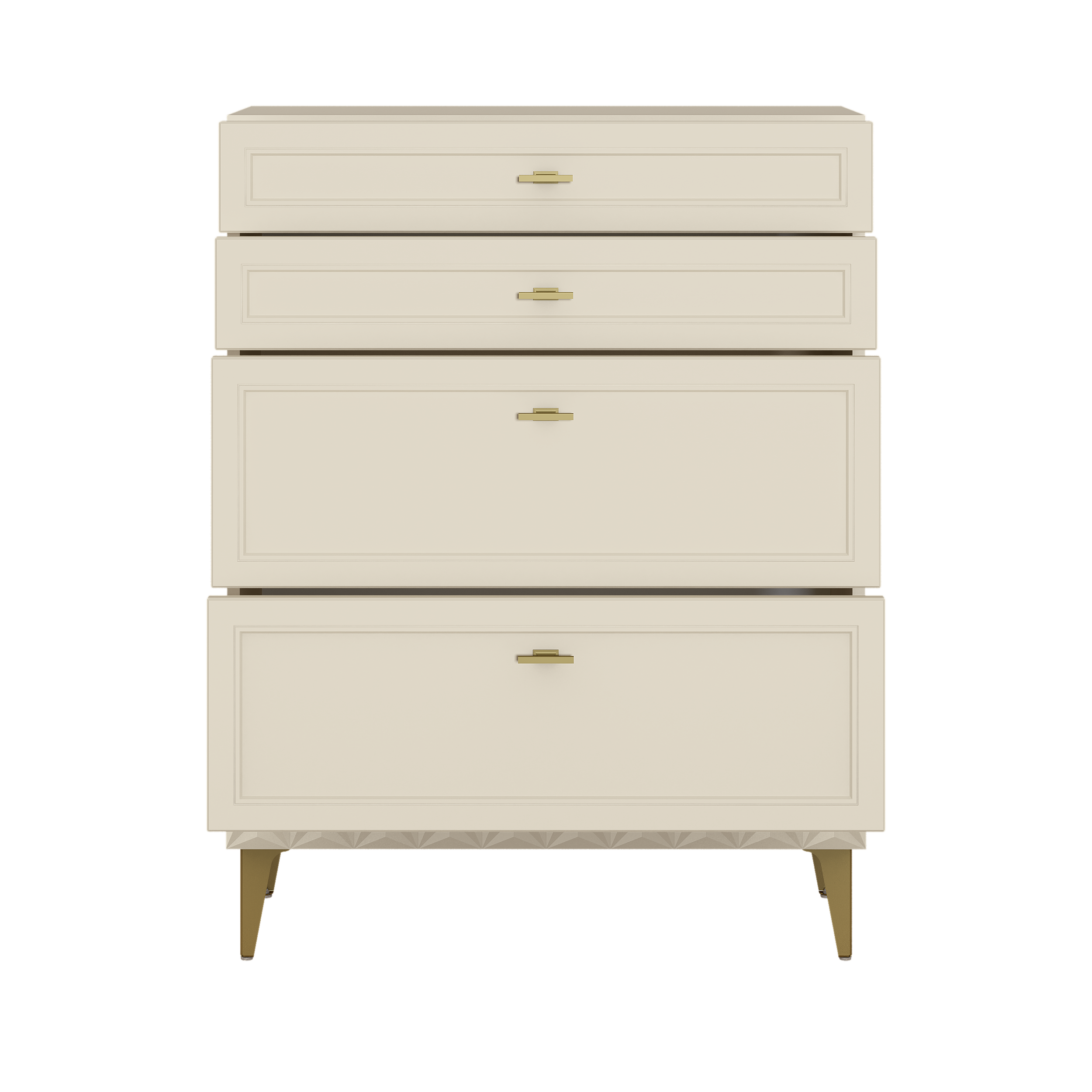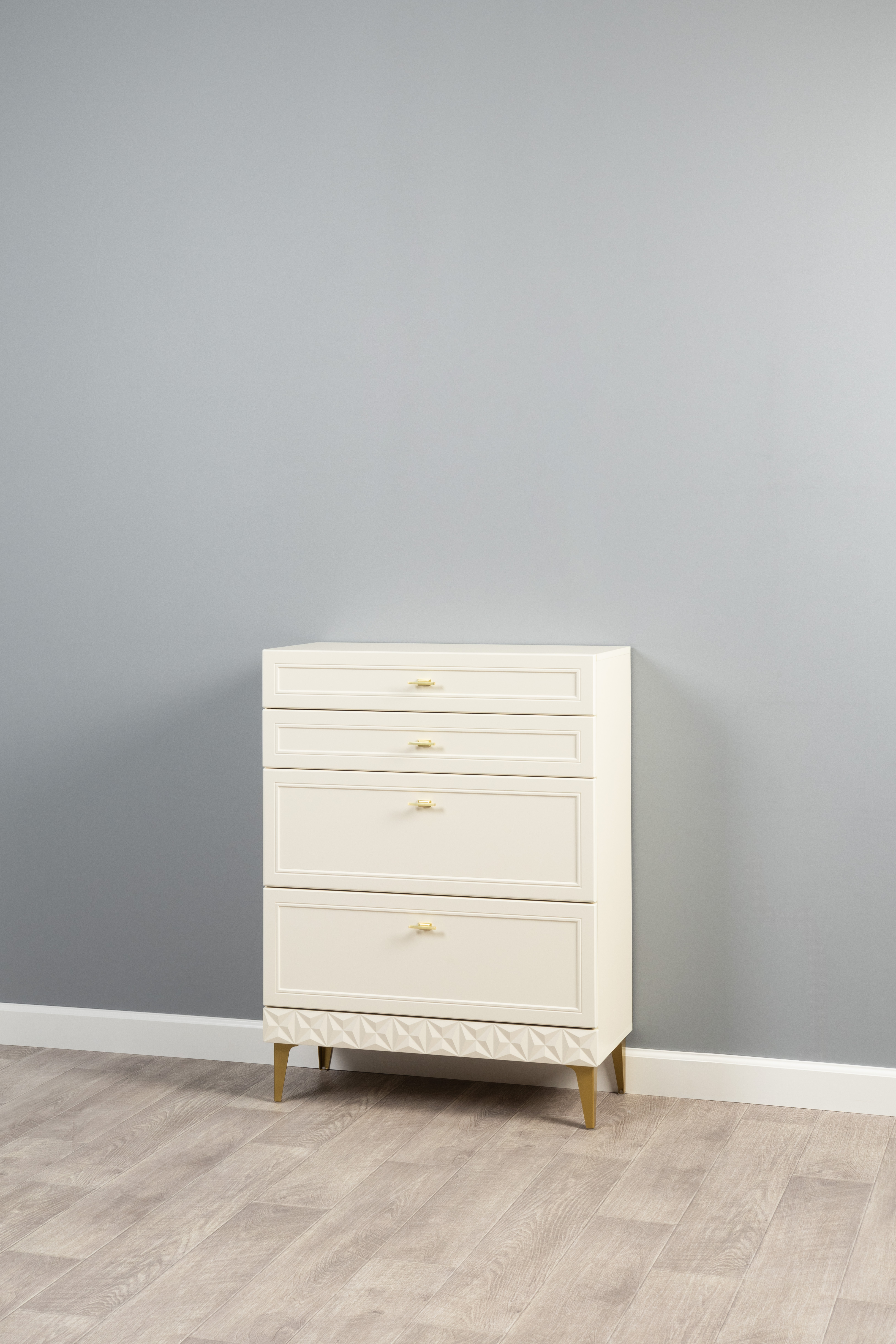 Изящные линии, глубокая фрезеровка фасадов из МДФ и благородные оттенки. Утончённая «Слоновая кость» и изысканная «Олива Шагрень» с глубоким зелёным тоном — создают атмосферу уюта, тепла и благородства. Металлические ручки и опоры золотого цвета придают мебели утончённый блеск, а петли и направляющие с доводчиками обеспечивают плавное и бесшумное закрытие фасадов.