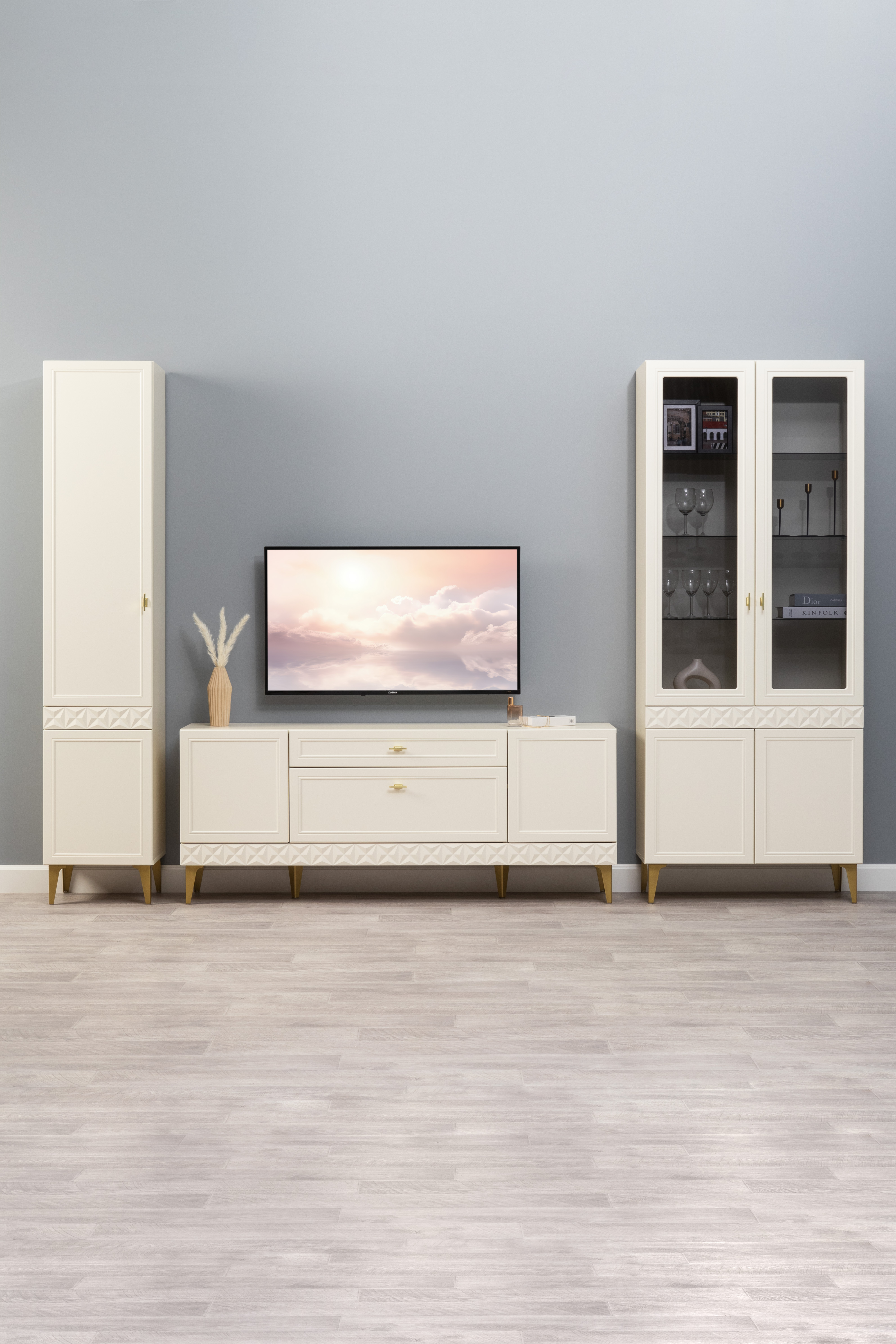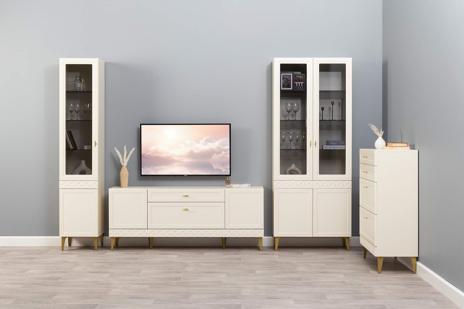 Гостиная Марион композиция 1 слоновая кость С341 PE, слоновая кость 6898 ПВХ, белый PE шагрень (собирается на любую сторону)