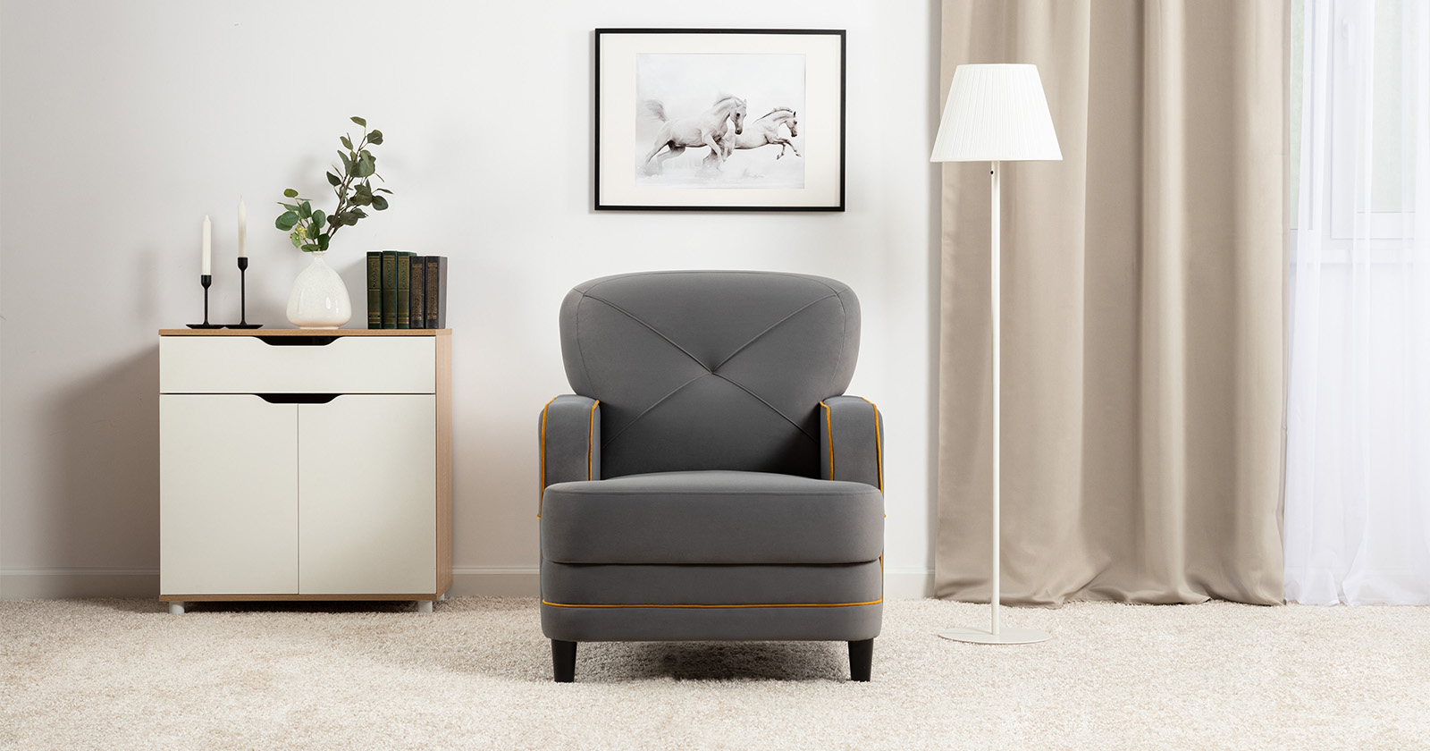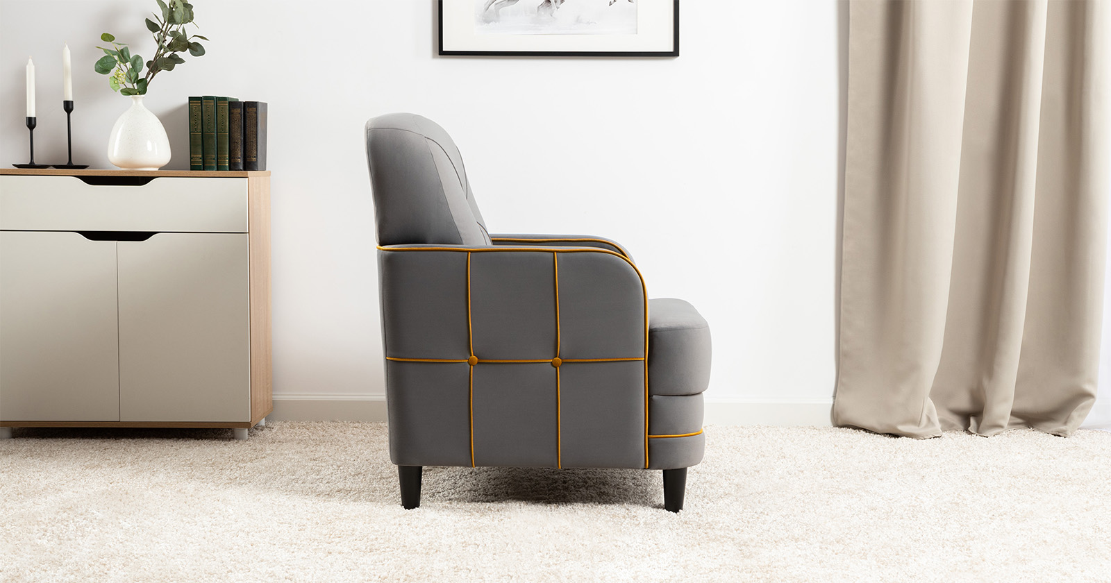 Кресло для отдыха Черри ТК 287 велюр Irida 21 серый, Эвита умбер горчичный