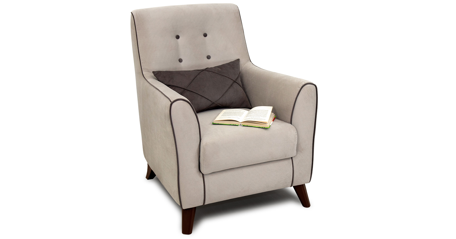 Декоративный кант на кресле, защипы на декоративной подушке, пуговицы на спинке