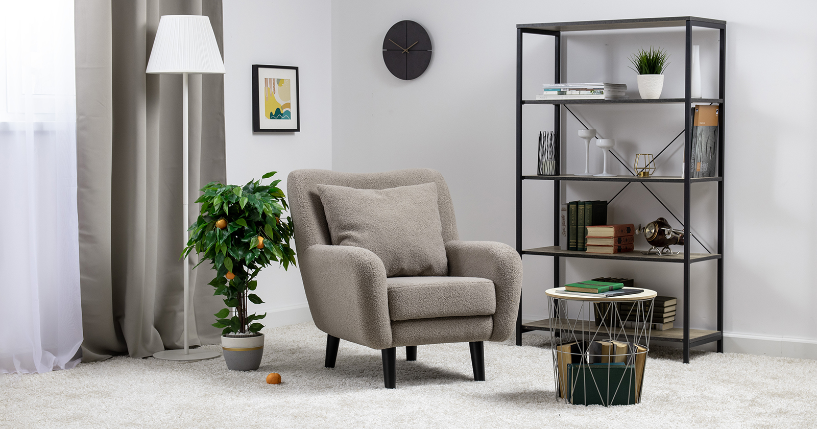 Кресло Шон станет вашим любимым местом для отдыха. Мягкое кресло с удобной спинкой даст вам расслабиться и отдохнуть. Благодаря небольшим размерам кресло подходит для многих современных квартир-студий или небольших комнат. Ткань букле делает кресло особенно уютным и мягким. Приспинная подушка в цвете кресла.