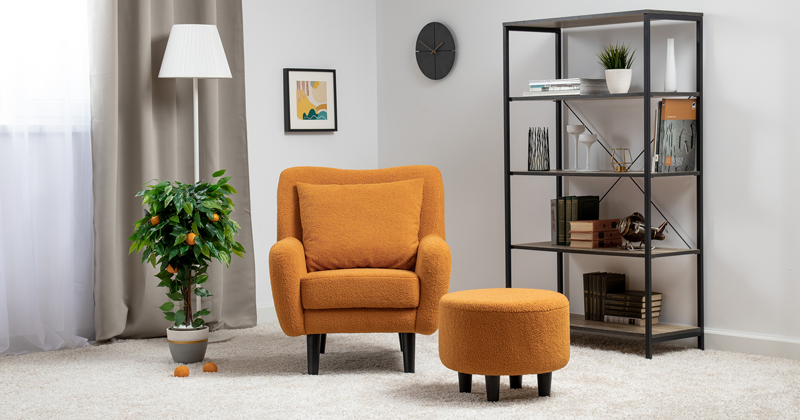 Кресло Шон станет вашим любимым местом для отдыха. Мягкое кресло с удобной спинкой даст вам расслабиться и отдохнуть. Благодаря небольшим размерам кресло подходит для многих современных квартир-студий или небольших комнат. Ткань букле делает кресло особенно уютным и мягким. Приспинная подушка в цвете кресла.