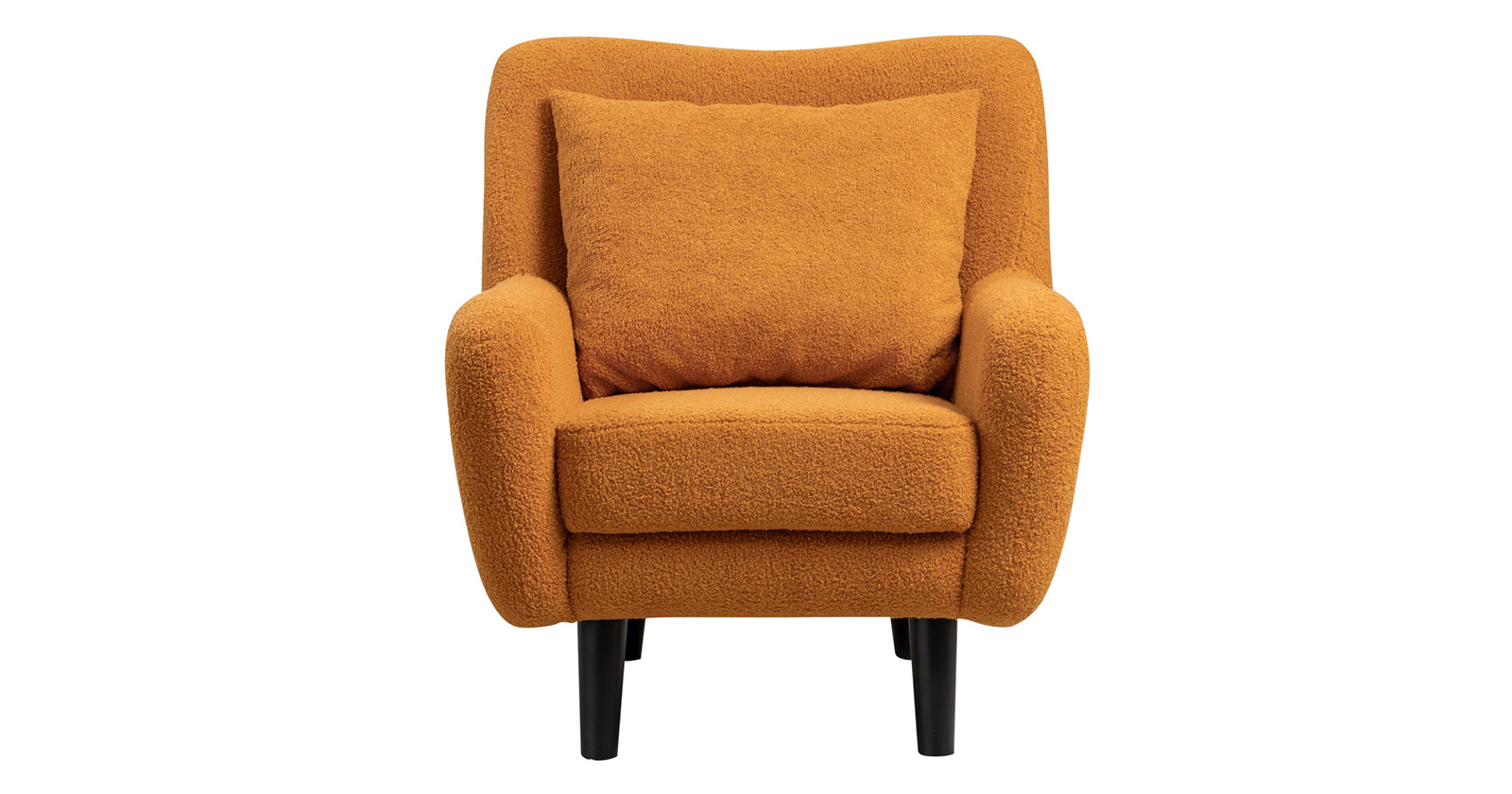 Ткань букле делает кресло особенно уютным и мягким. Приспинная подушка в цвете кресла
