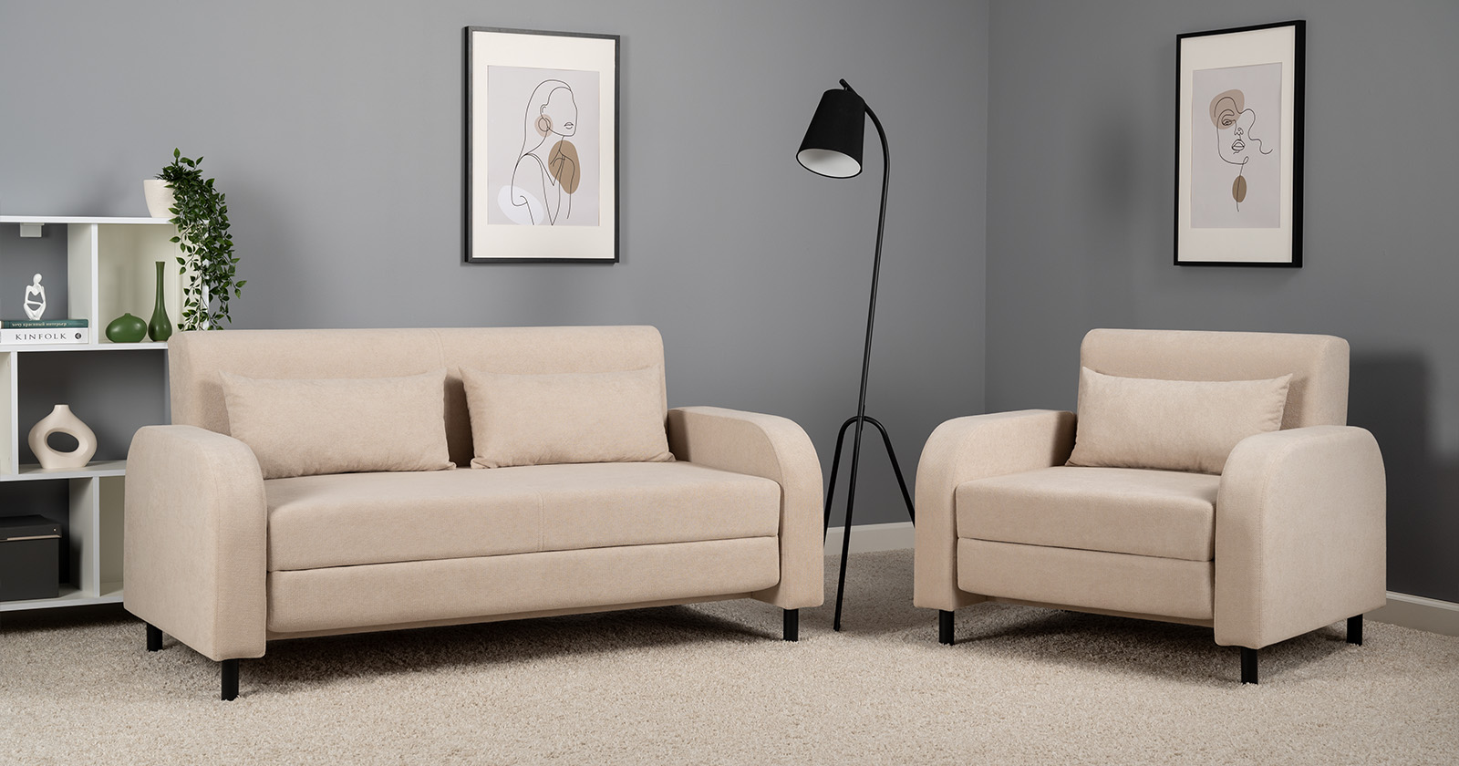 Диван и кресло сочетают в себе лаконичность и функциональность. Минималистичные линии и отсутствие лишних деталей делают коллекцию идеальной для интерьеров в современном стиле.