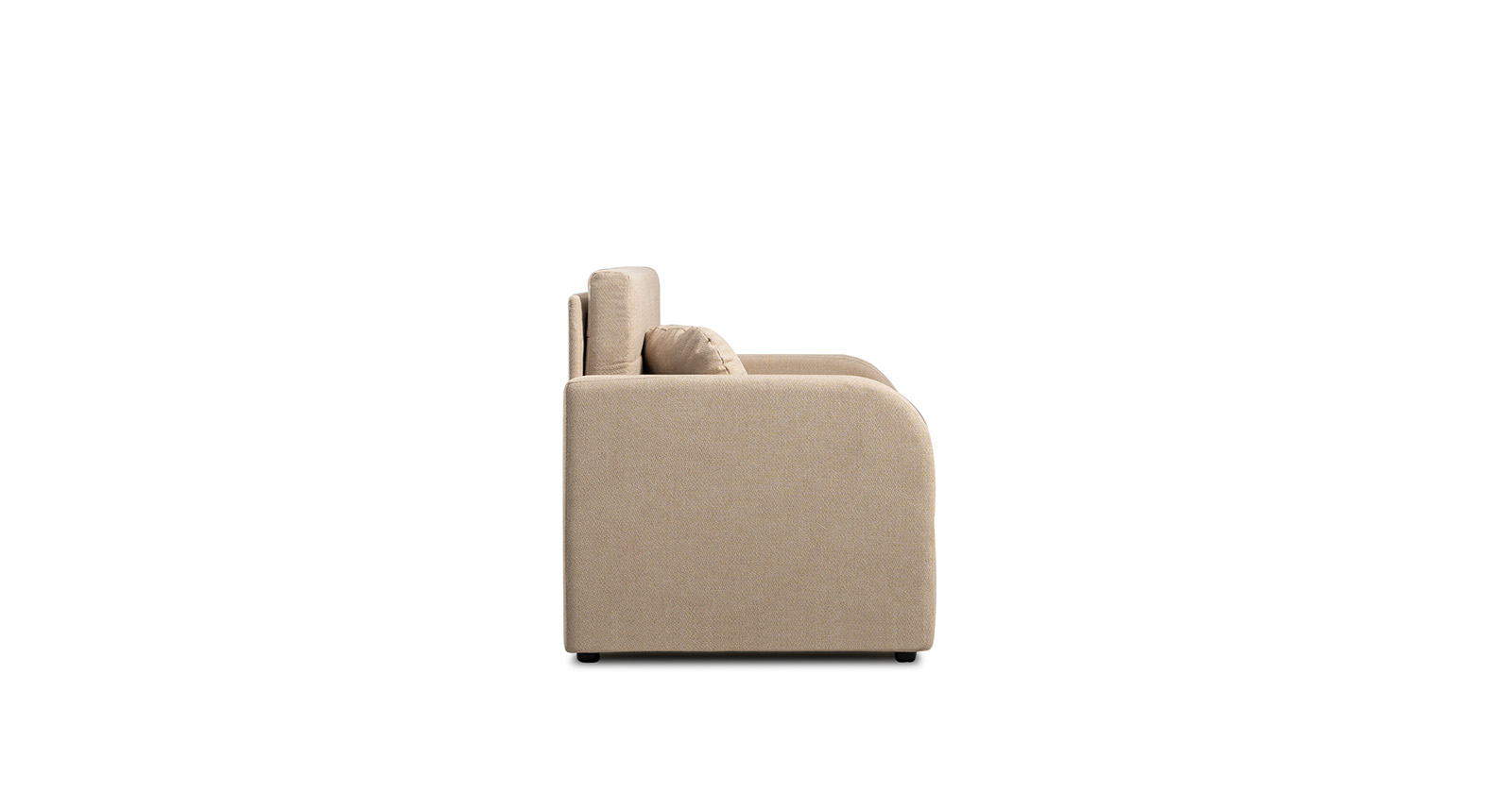 Коллекция выполнена в современном минималистичном стиле с мягкой обивкой из износостойкой ткани и декоративной стежкой, подчеркивающей геометрию форм. Механизм трансформации обеспечивает дополнительное спальное место, делая мебель не только эстетичной, но и максимально функциональной для небольших пространств.