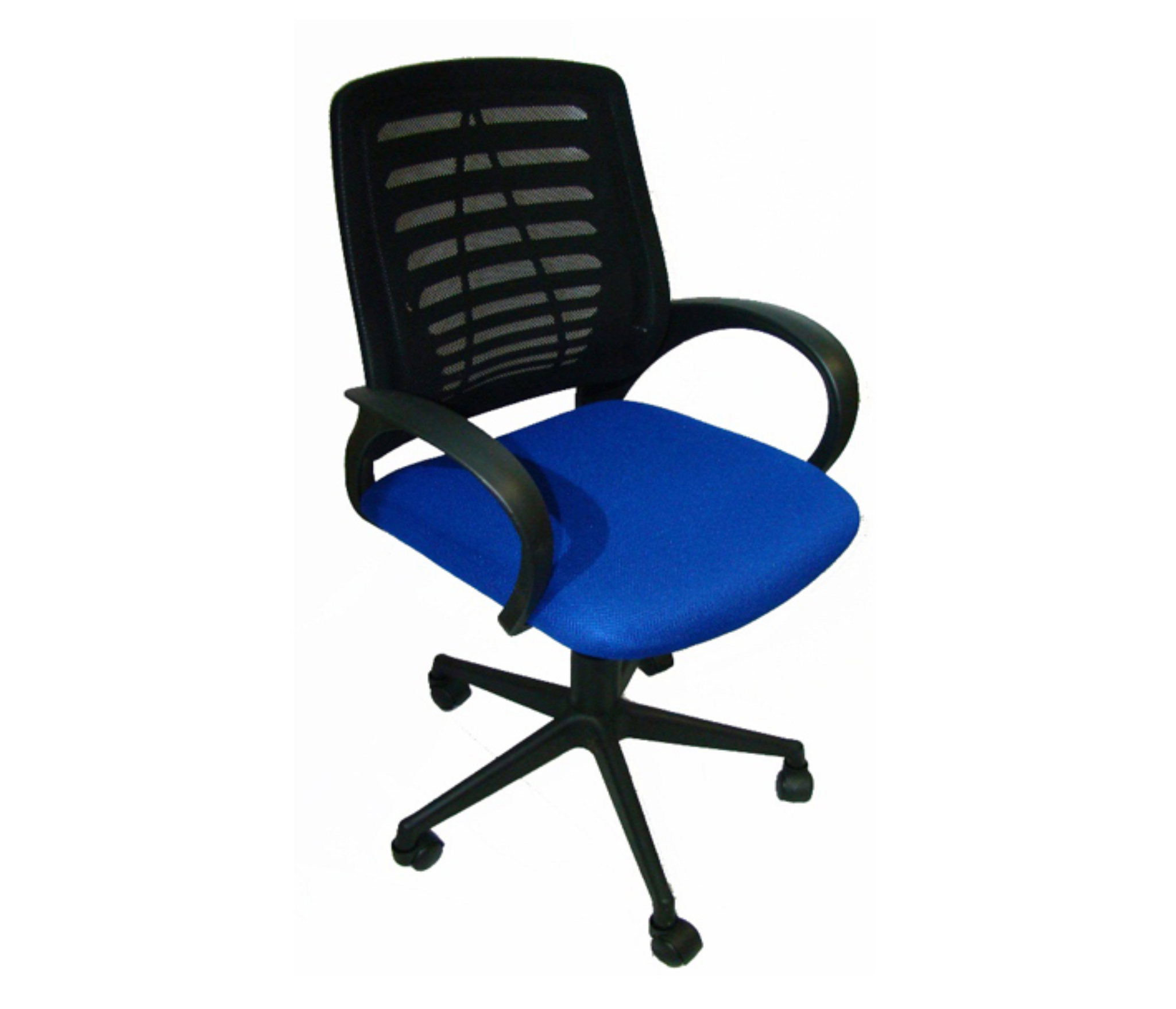 Кресло на колесах Ирис люкс обивка ткань-сетка TW сидушка синий, спинка черный, подлокотники пластик, крестовина пластик, механизм качания