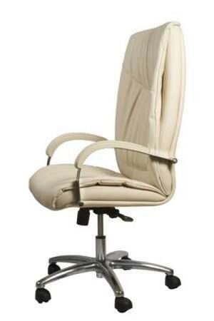 На фото изображен вариант кресла рукводителя Шеф с хромированными подлокотниками и хромированной крестовиной в светло-бежевой коже.