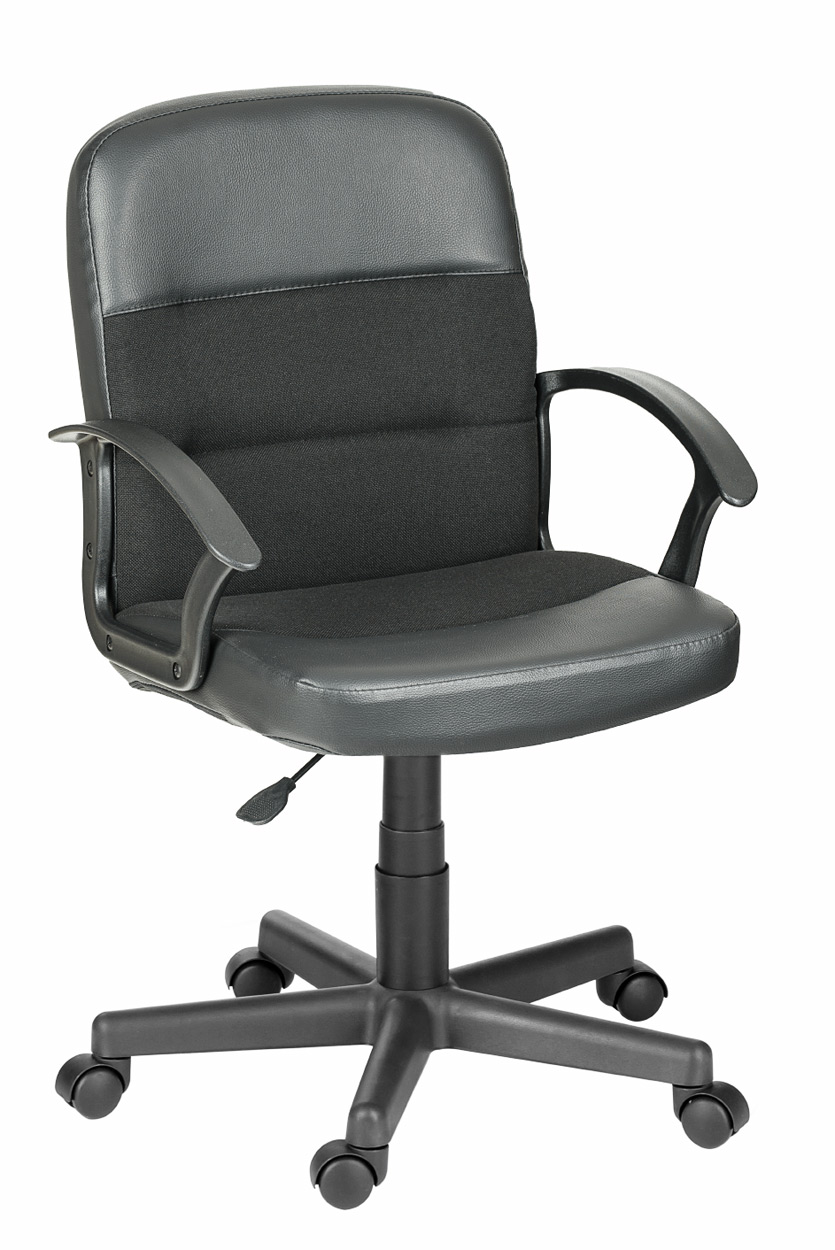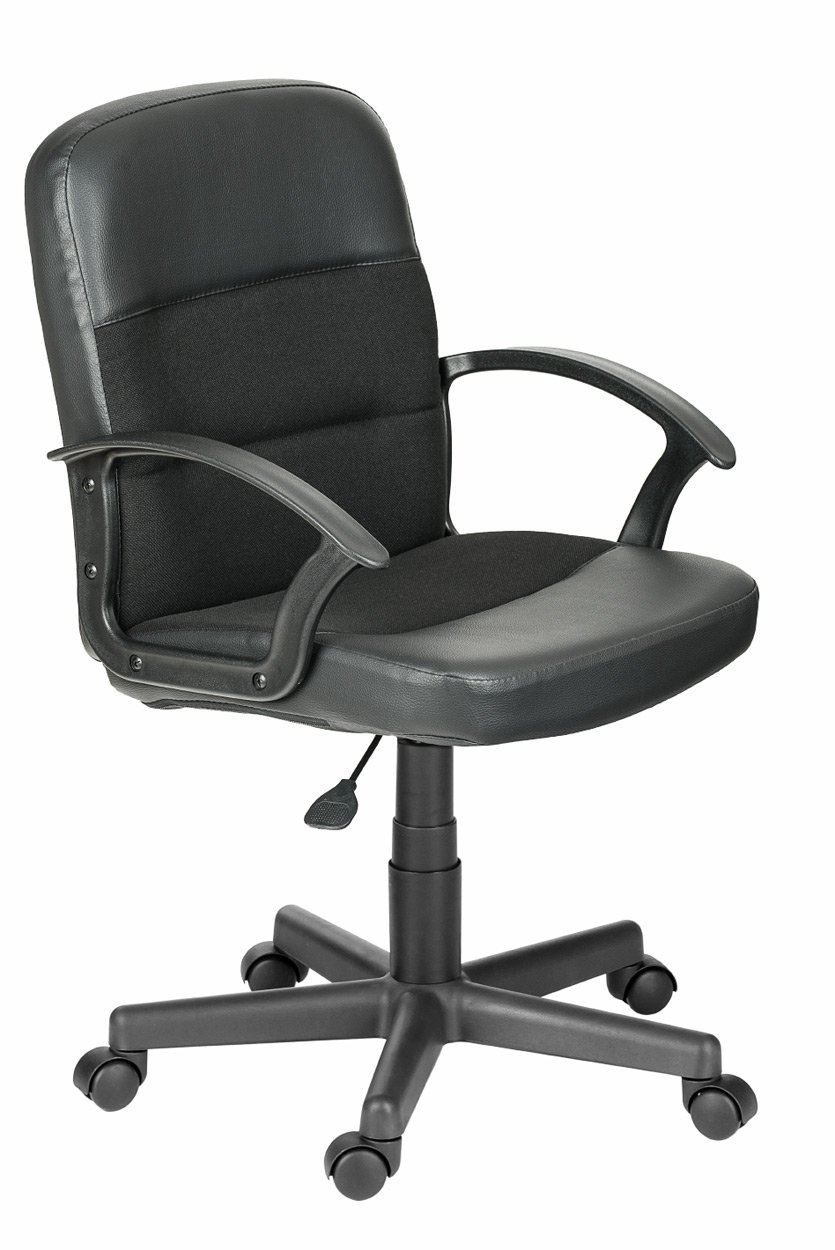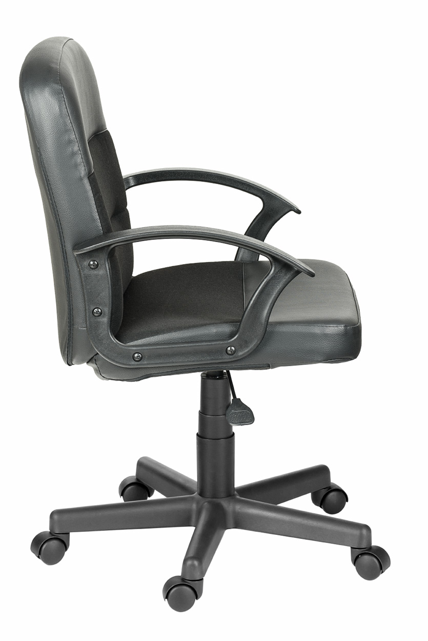 На фото кресло в кожзаме черного цвета и черной ткани В-14, крестовина Мозес (пластик).