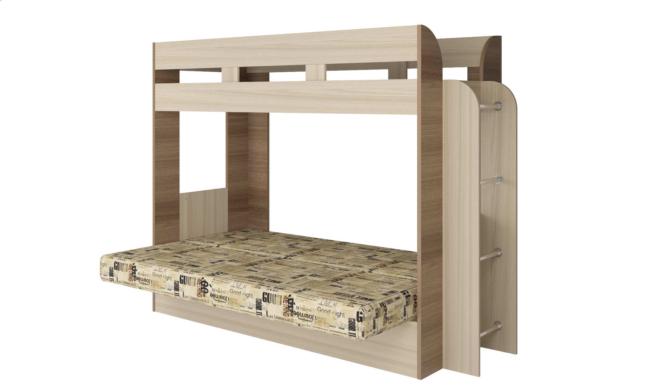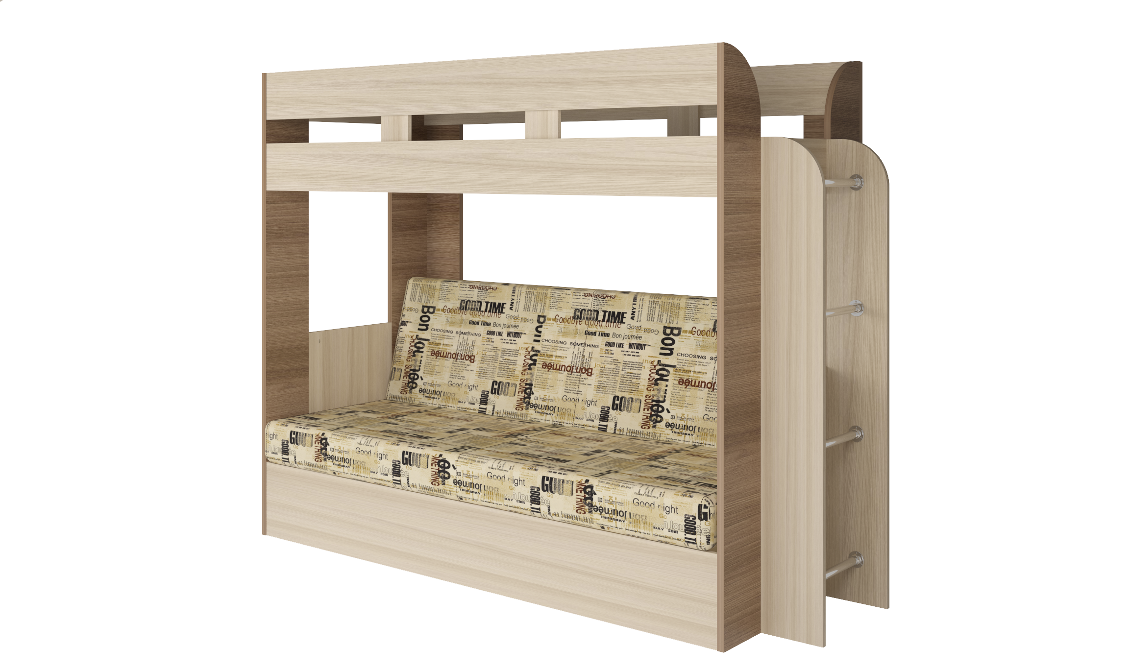 Кровать детская двухъярусная Карамель 75 ясень шимо темный/светлый, диван - велюр Газета (сборка на любую сторону) спальное место верх 80х190, низ 120х185