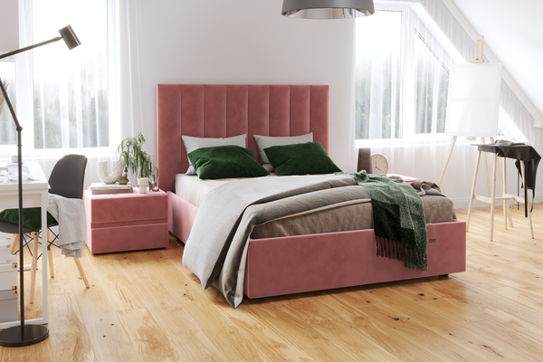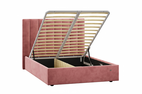 Кровать Ingrid 1400 велюр Ультра коралл с ортопедическим основанием и подъемным механизмом