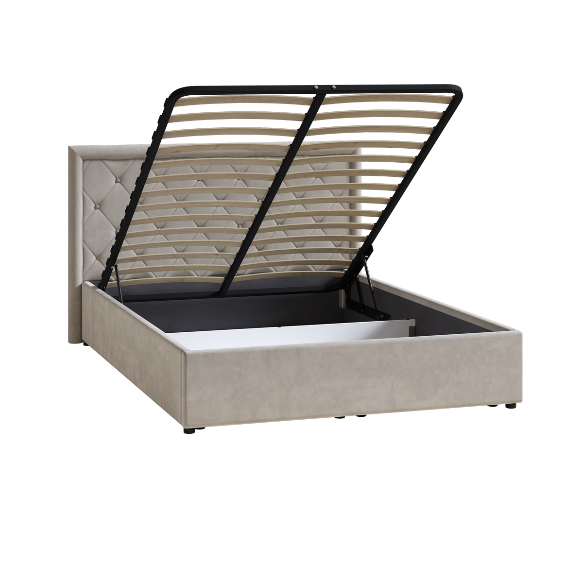Кровать Марион 140 велюр OCEAN 005 темно-бежевый с ортопедическим основанием и подъемным механизмом (спальное место 140 х 200)