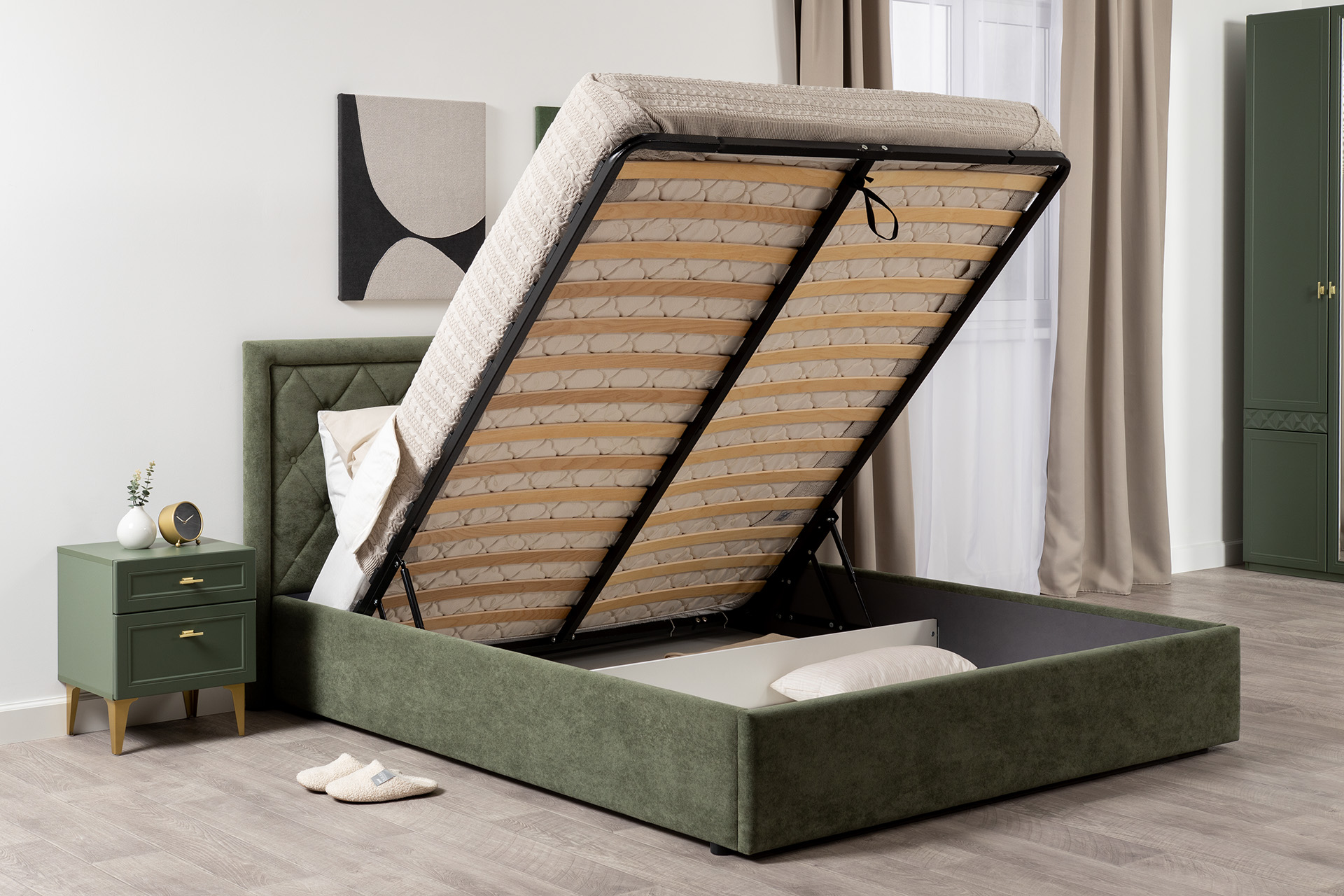 Кровать Марион 160 велюр OCEAN 012 темно-зеленый с ортопедическим основанием и подъемным механизмом (спальное место 160 х 200)