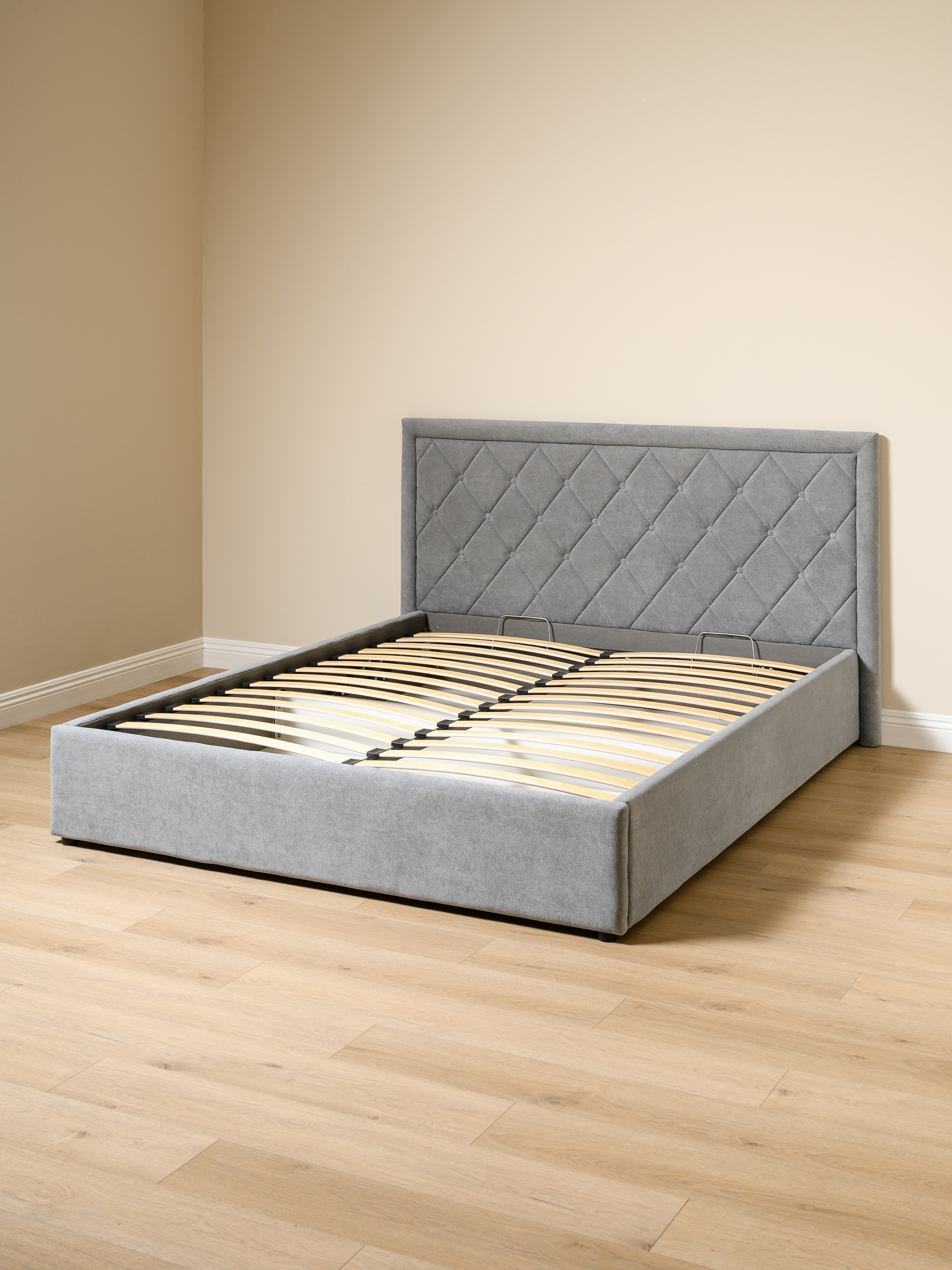 Основание кровати укомплектовано матрасодержателями. Жесткое кроватное дно из ЛДСП 16 мм на опорах 25 мм.