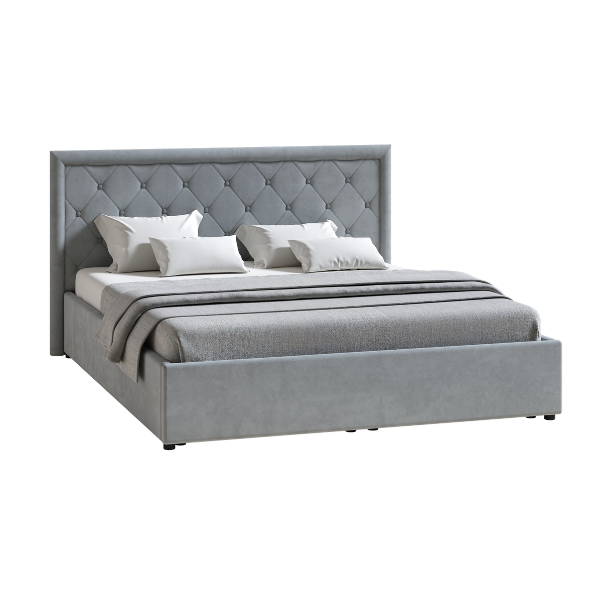 Кровать Марион 160 велюр OCEAN 023 серый с ортопедическим основанием и подъемным механизмом (спальное место 160 х 200)
