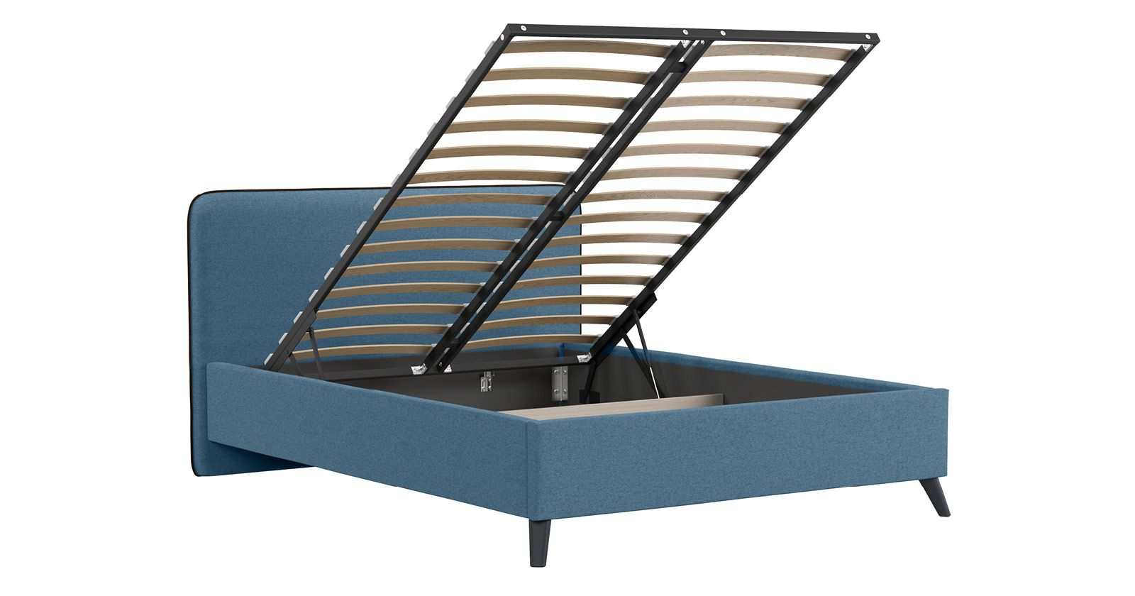 Кровать Миа 180 светло-синий, кант желтовато-коричневый с ортопедическим основанием и подъемным механизмом