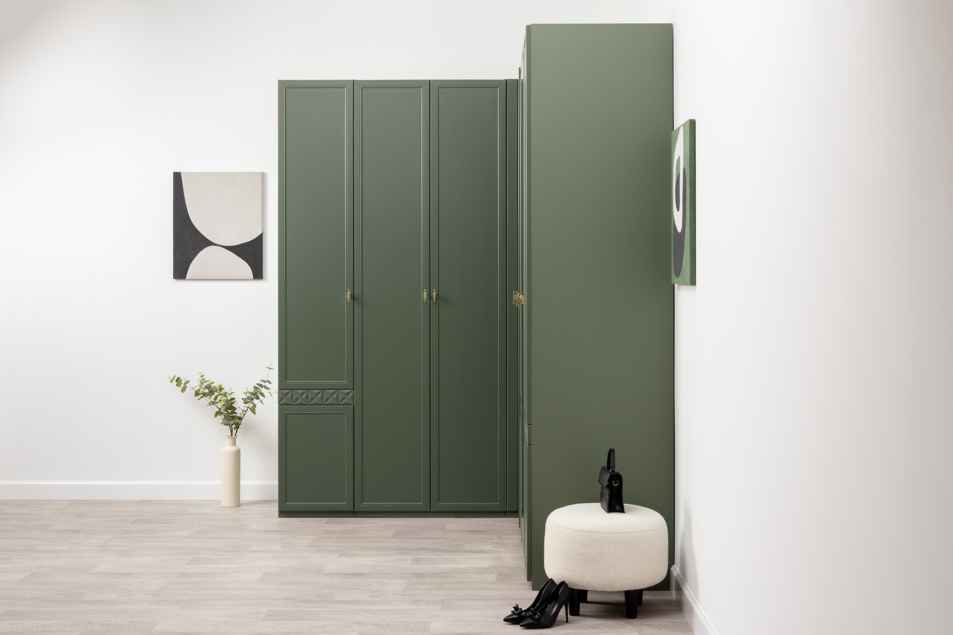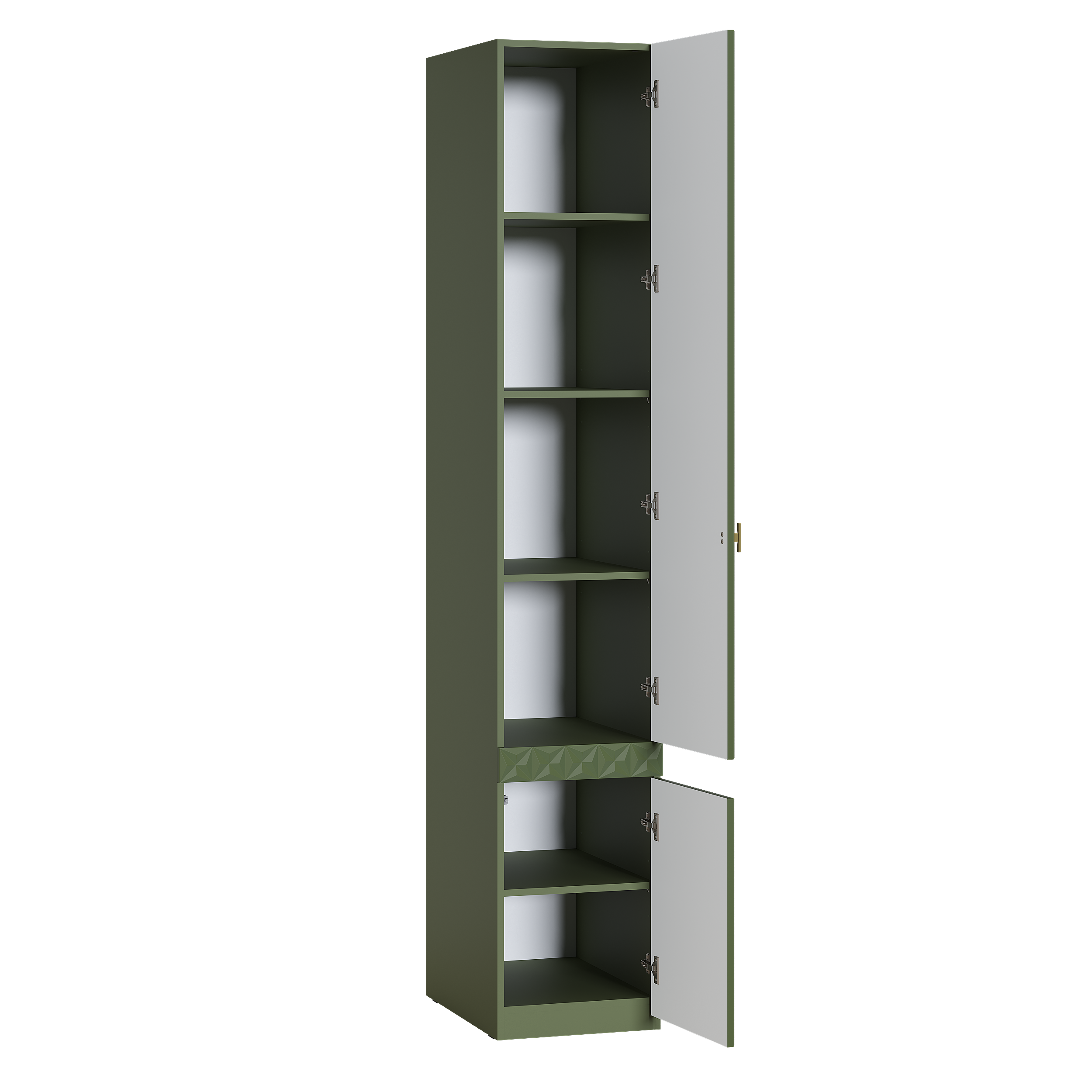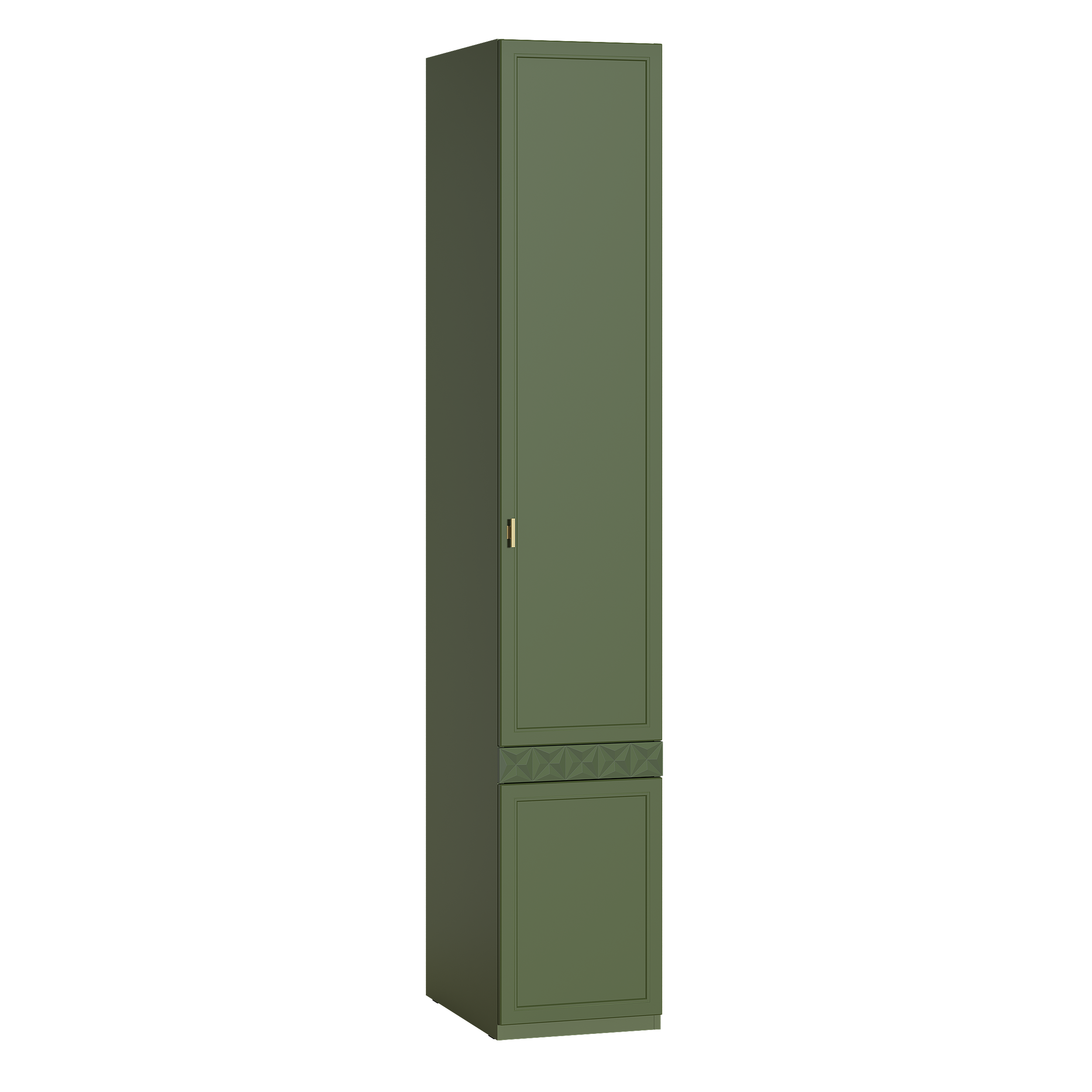 Шкаф-пенал Марион 16.340.01 дымчатый зеленый K521, олива шагрень AG 1050 ПВХ (собирается на любую сторону)
