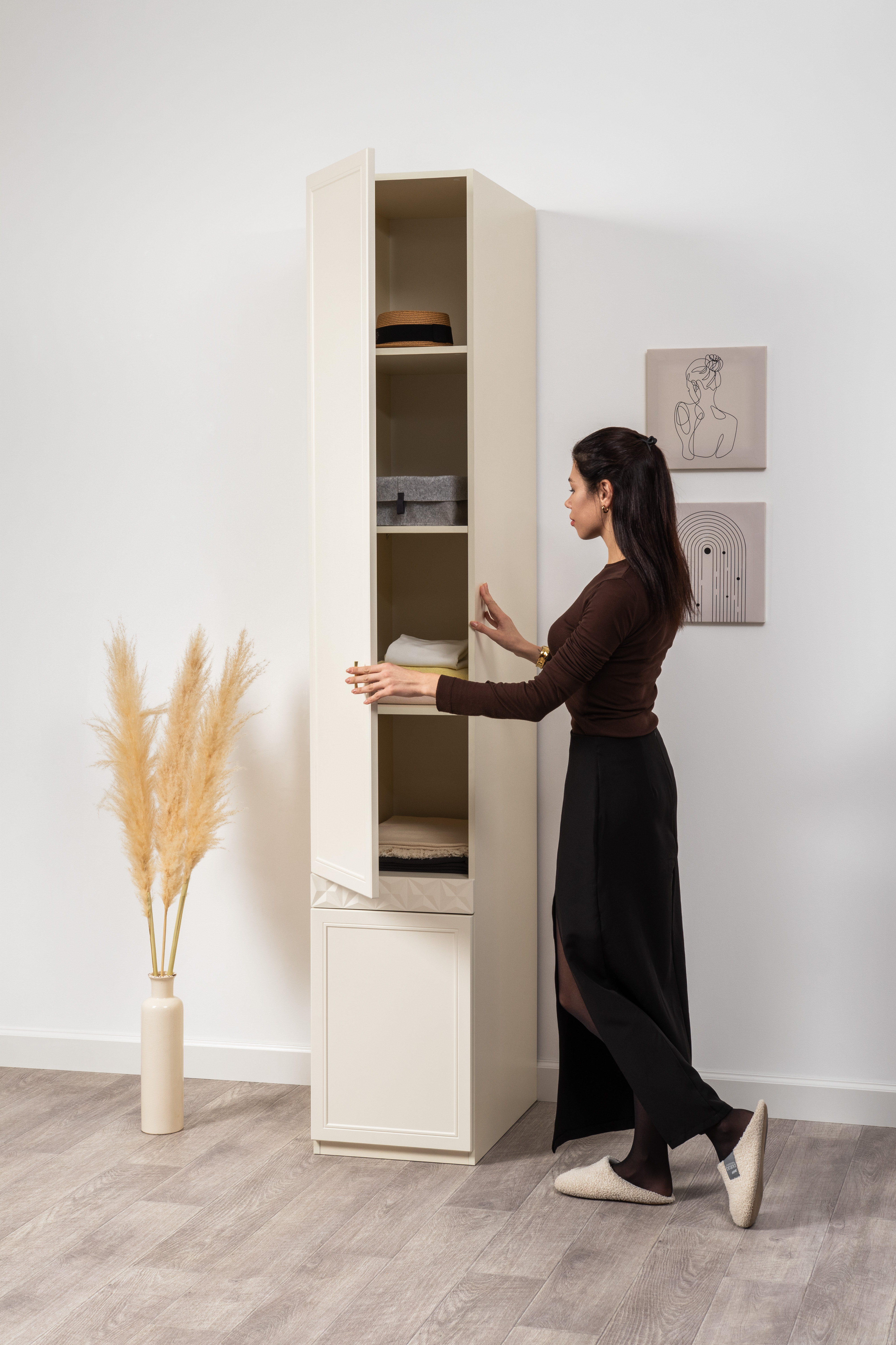 Шкаф-пенал Марион 16.340.01 слоновая кость С341 PE, слоновая кость 6898 ПВХ (собирается на любую сторону)