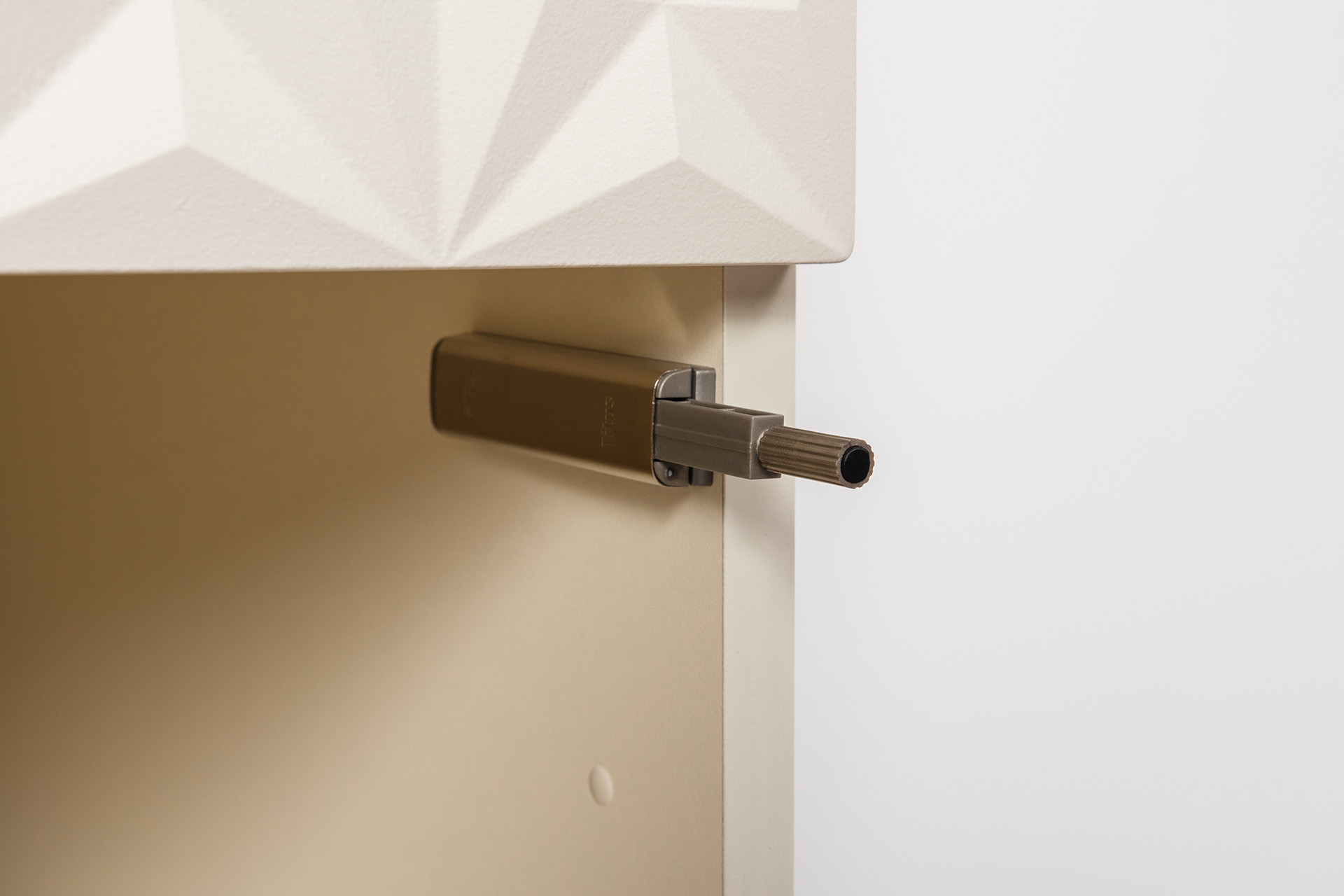 Изящные линии, глубокая фрезеровка фасадов из МДФ и благородные оттенки. Утончённая «Слоновая кость» и изысканная «Олива Шагрень» с глубоким зелёным тоном — создают атмосферу уюта, тепла и благородства. Металлические ручки и опоры золотого цвета придают мебели утончённый блеск, а петли и направляющие с доводчиками обеспечивают плавное и бесшумное закрытие фасадов.