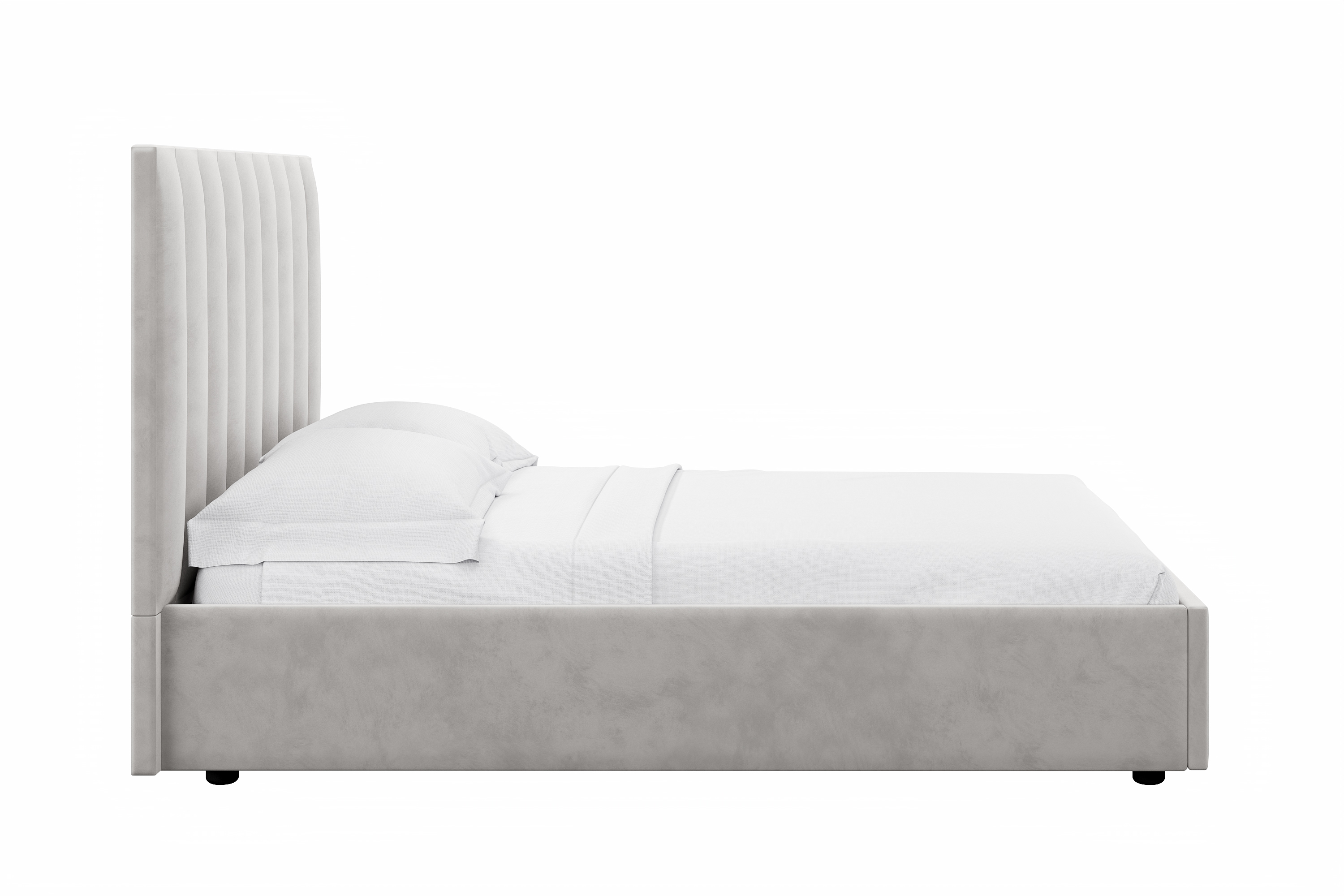 Спальня Дакота композиция 1 меренга, белый, с кроватью Ингрид/Ingrid 1600 велюр ультра смог/ultra smoke, пуф Альба 450 велюр ультра смог/ultra smoke