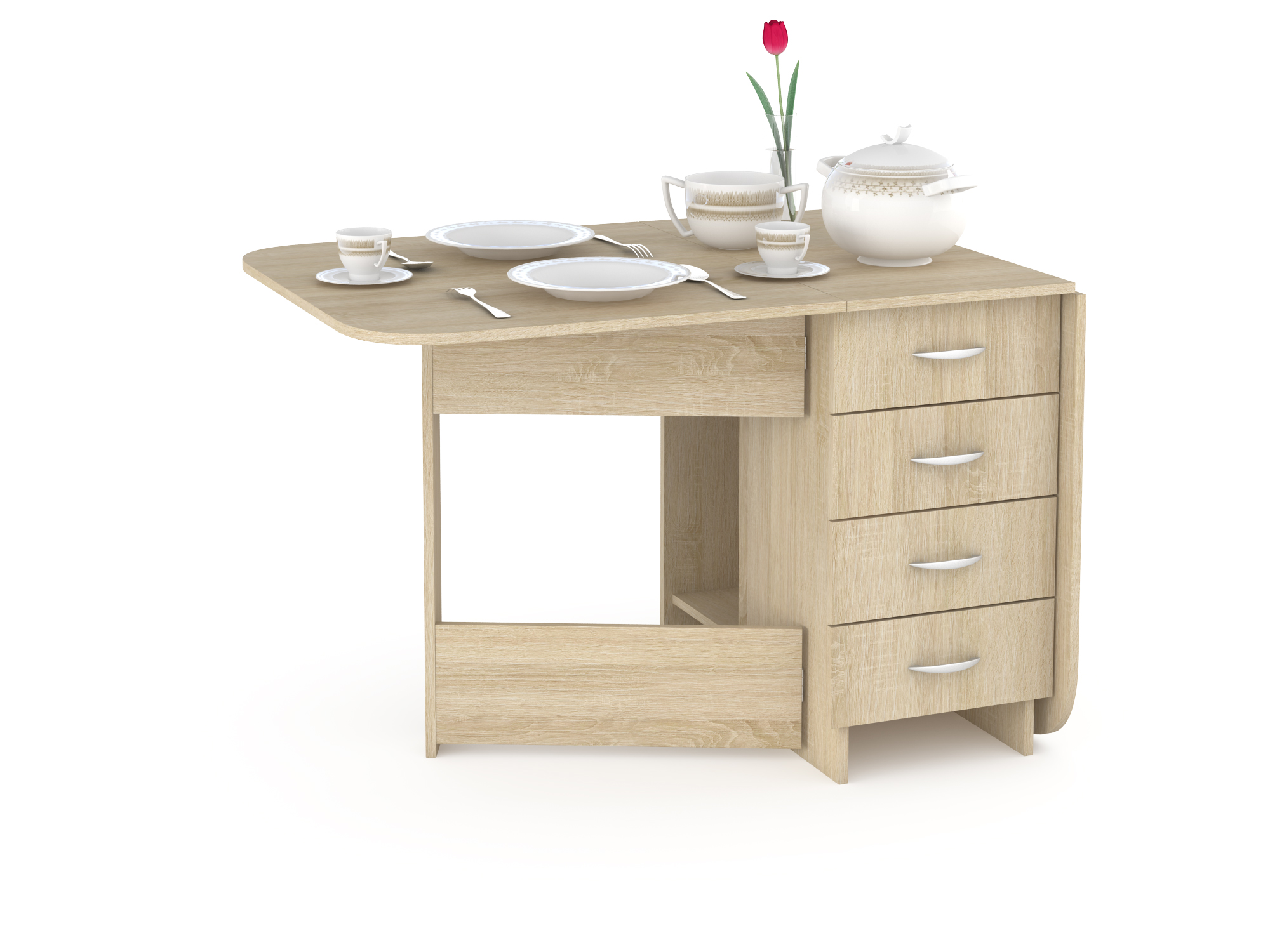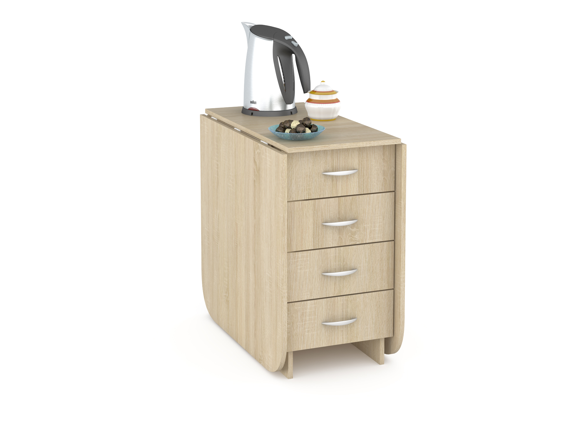 Четыре выдвижных ящика для хранения на роликовых направляющих, скругленные углы на столешницах, пластиковые ручки, размеры в сложенном виде (см): 42,4 х 78 х 75,3, размеры в разложенном виде (см): 182,6 х 78 х 75,3