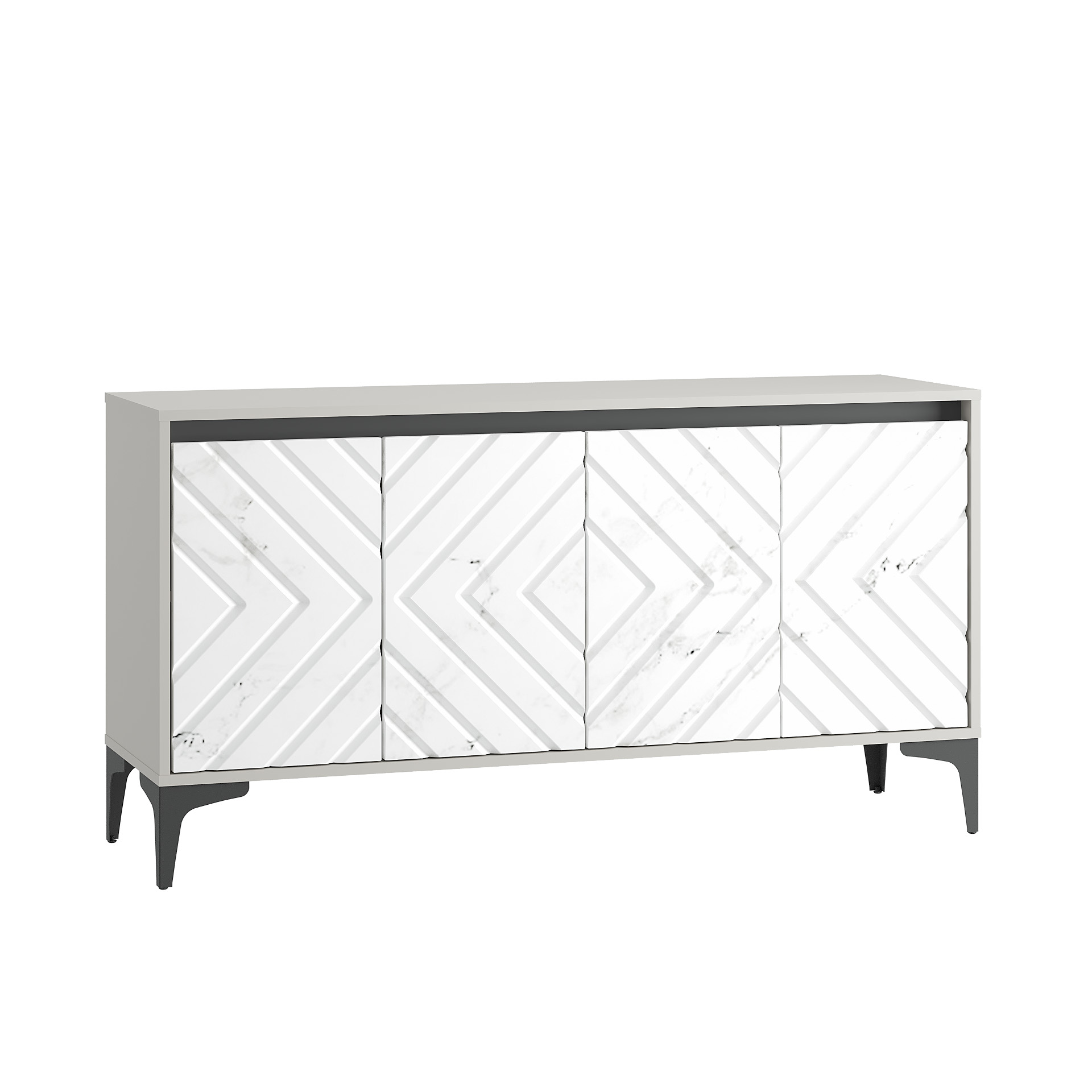 Тумба под ТВ в гостиную Муар 13.261.02 стальной серый, мрамор белый софт ПВХ
