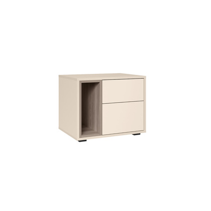 Тумба оснащена выдвижным ящиком с шариковыми направляющими, за счет которых ящик выдвигается плавно и бесшумно, а открытая ниша позволит удобно расположить все необходимые вещи. Песочный фасад гармонично подчеркивает черную лаконичную ручку.